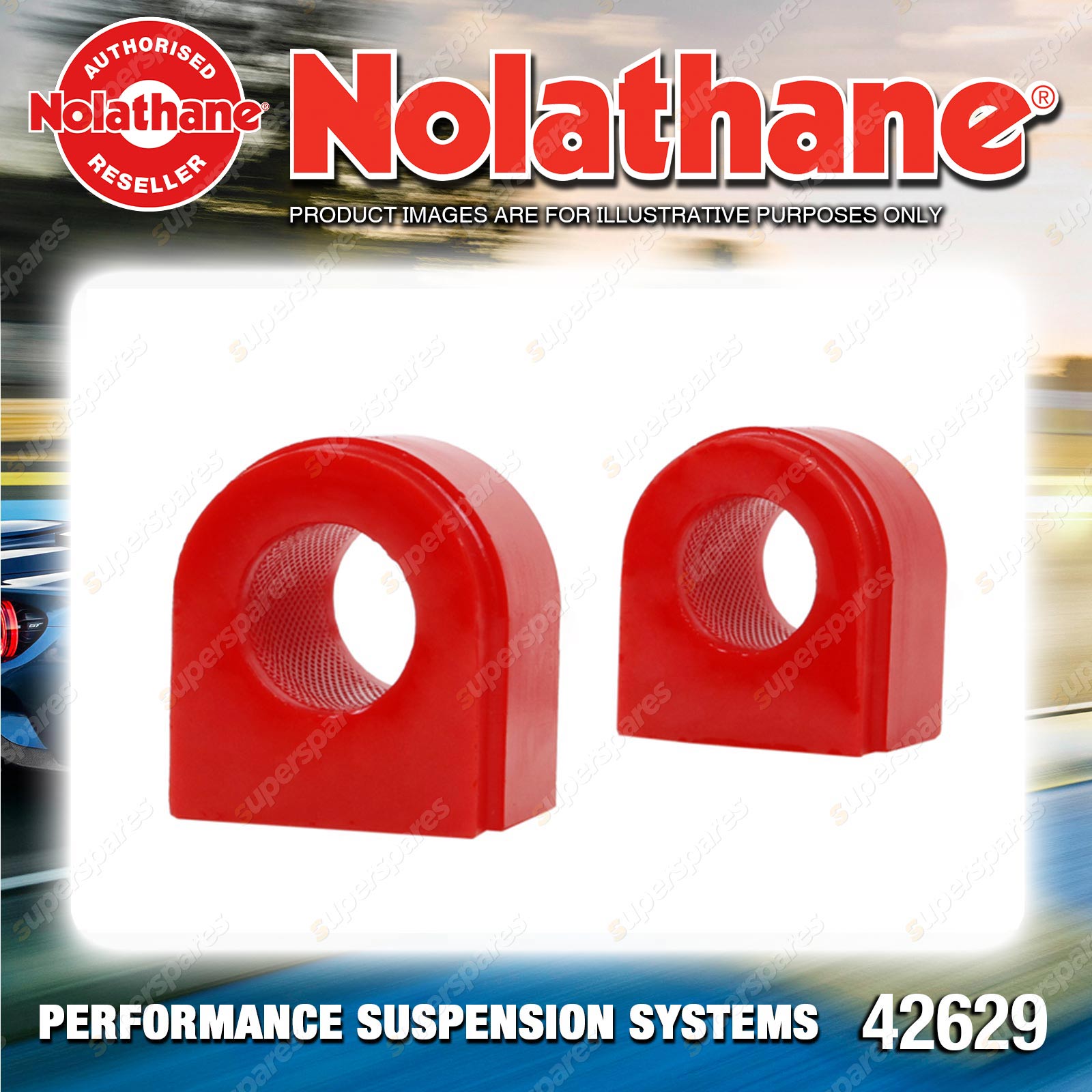 | Contents : Nolathane Front Sway bar - mount bushing Warranty : 3 Year / 60,000Kms Kit Contents : 2 Bushings, Grease |