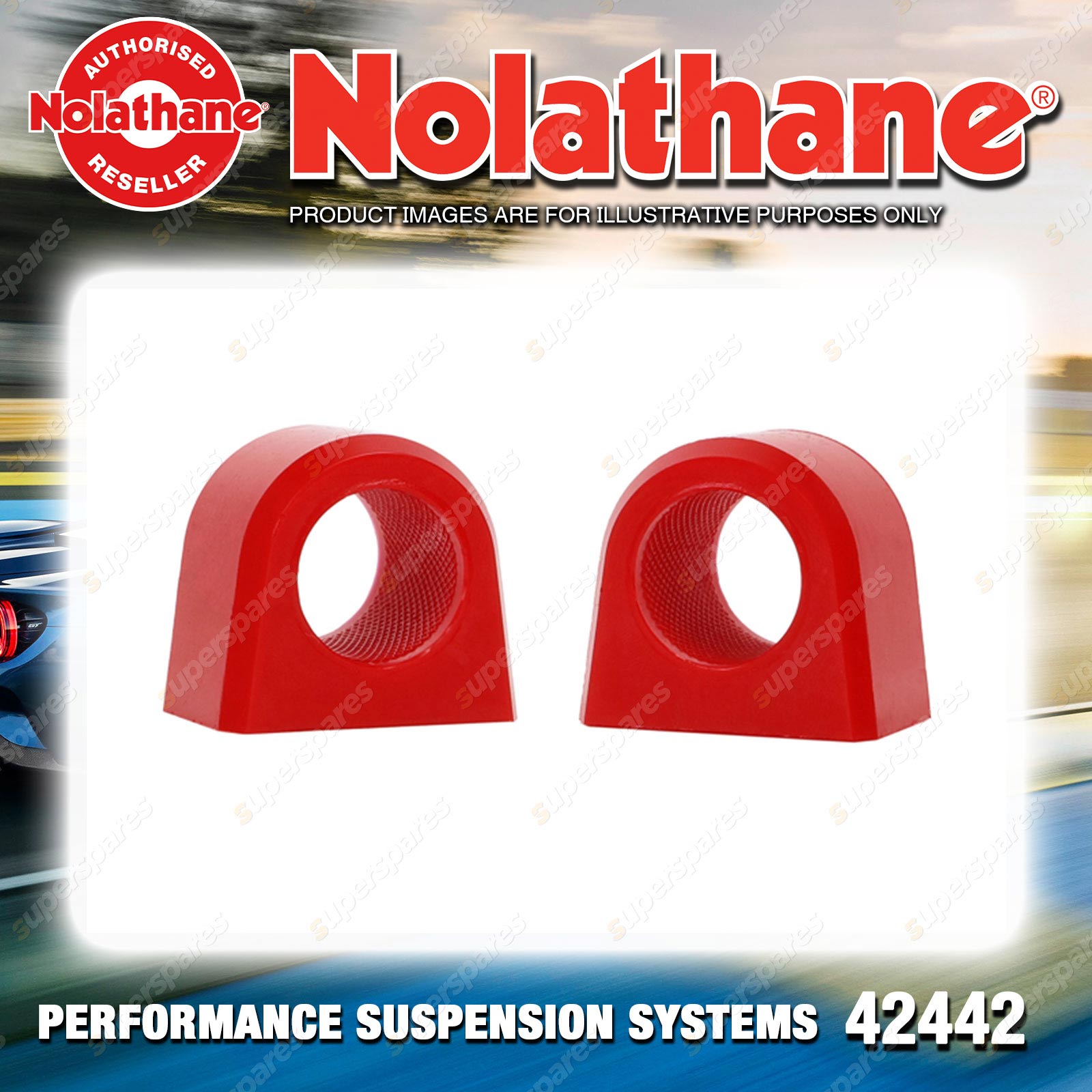 | Contents : Nolathane Front Sway bar - mount bushing Warranty : 3 Year / 60,000Kms Kit Contents : 2 Bushings, Grease |