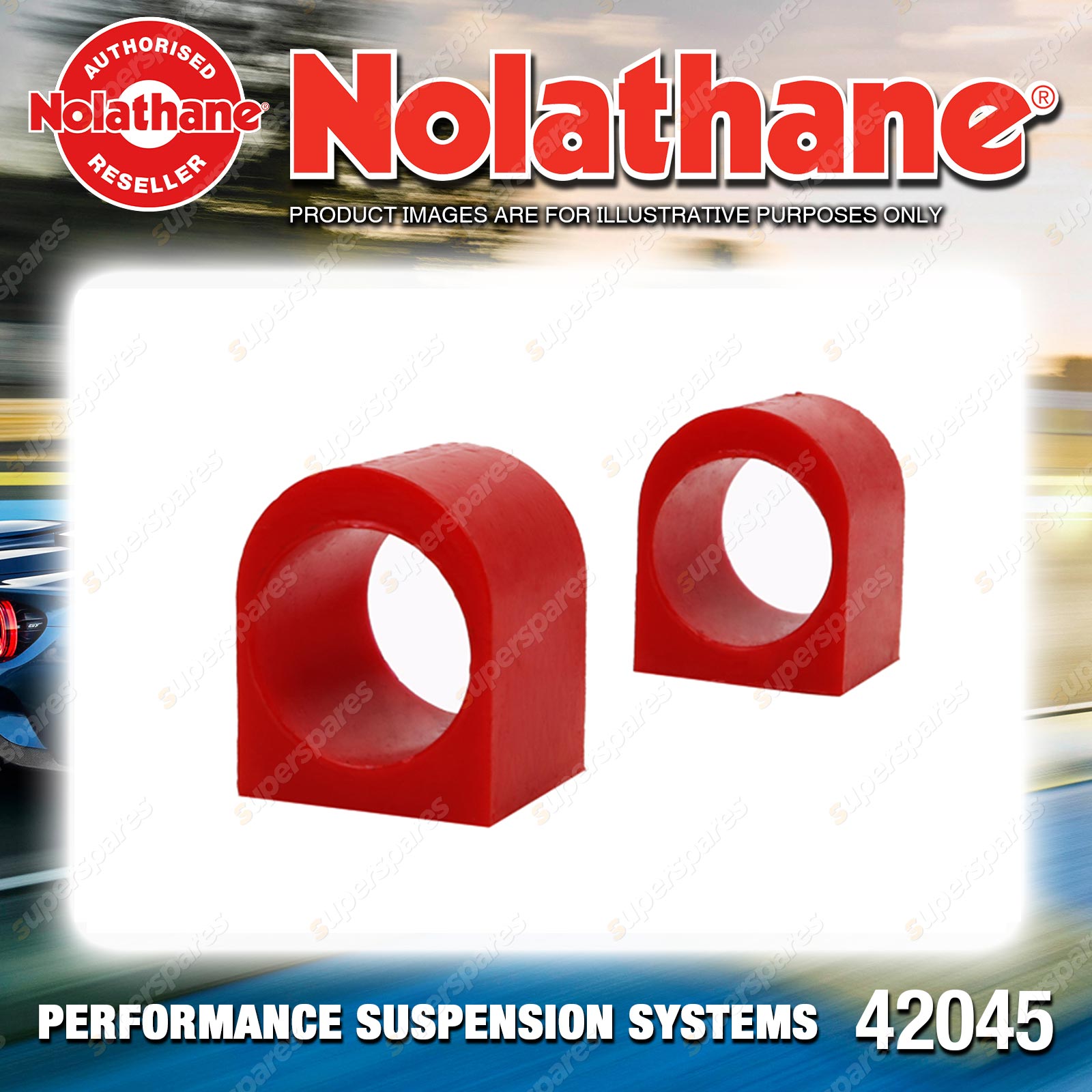 | Contents : Nolathane Front Sway bar - mount bushing Warranty : 3 Year / 60,000Kms Kit Contents : 2 Bushings, Grease |