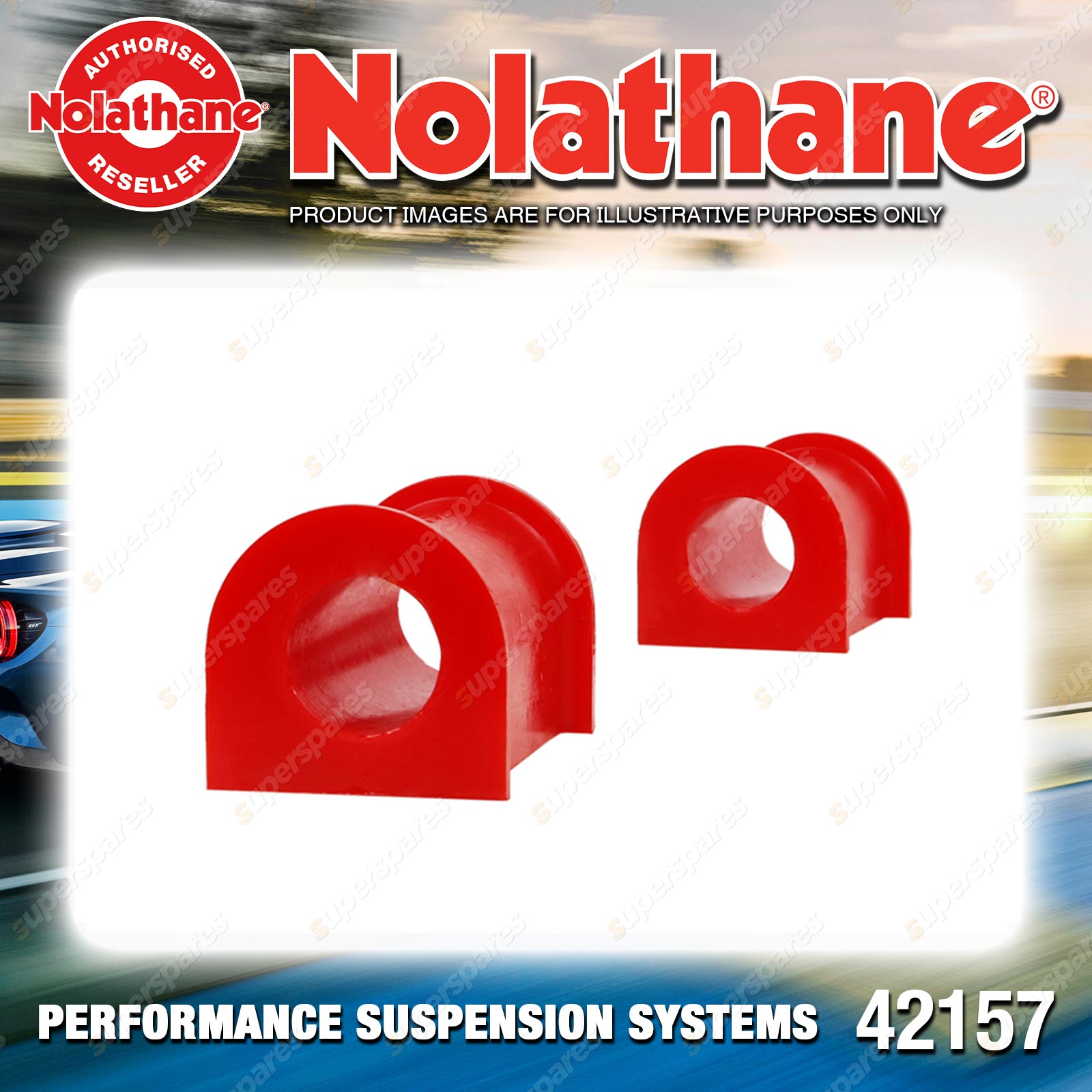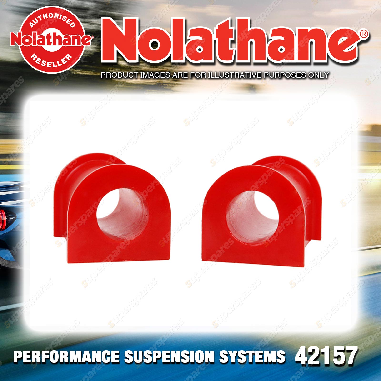 | Contents : Nolathane Front Sway bar - mount bushing Warranty : 3 Year / 60,000Kms Kit Contents : 2 Bushings, Grease |