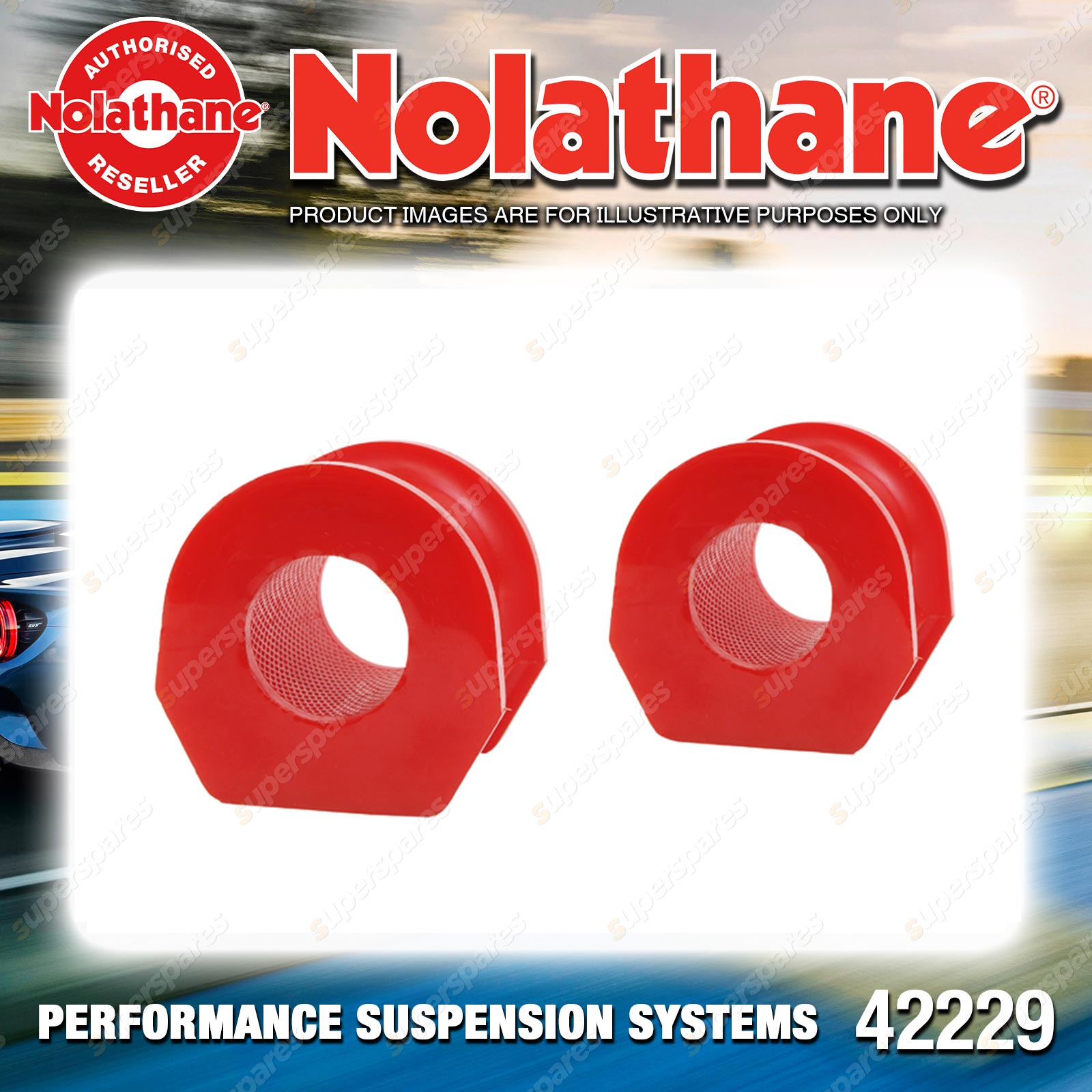 | Contents : Nolathane Front Sway bar - mount bushing Warranty : 3 Year / 60,000Kms Kit Contents : 2 Bushings, Grease |