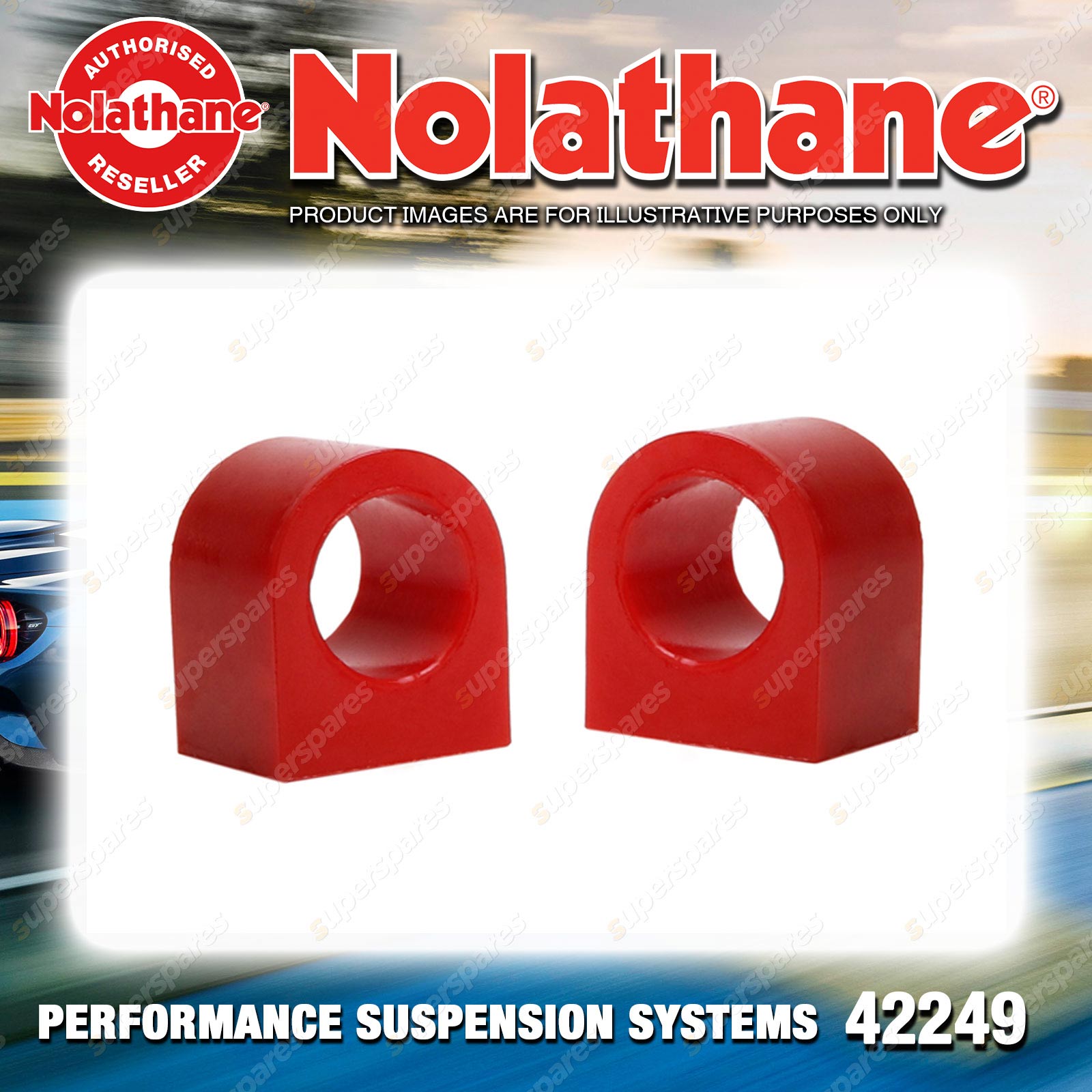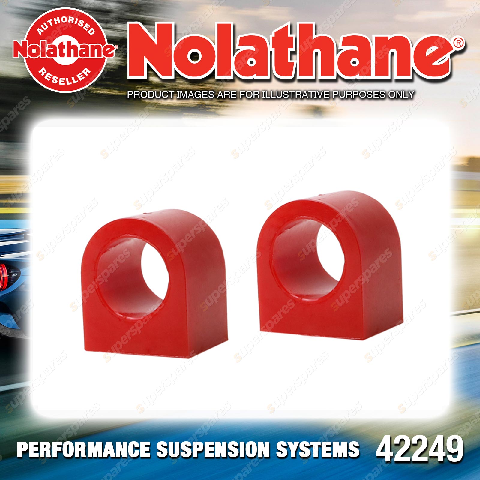 | Contents : Nolathane Front Sway bar - mount bushing Warranty : 3 Year / 60,000Kms Kit Contents : 2 Bushings, Grease |