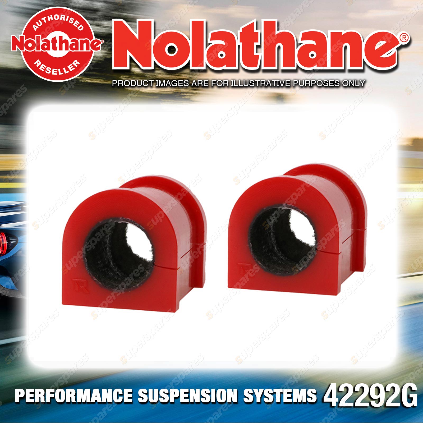 | Contents : Nolathane Front Sway bar - mount bushing Warranty : 3 Year / 60,000Kms Kit Contents : 2 Bushings, Install Guide |