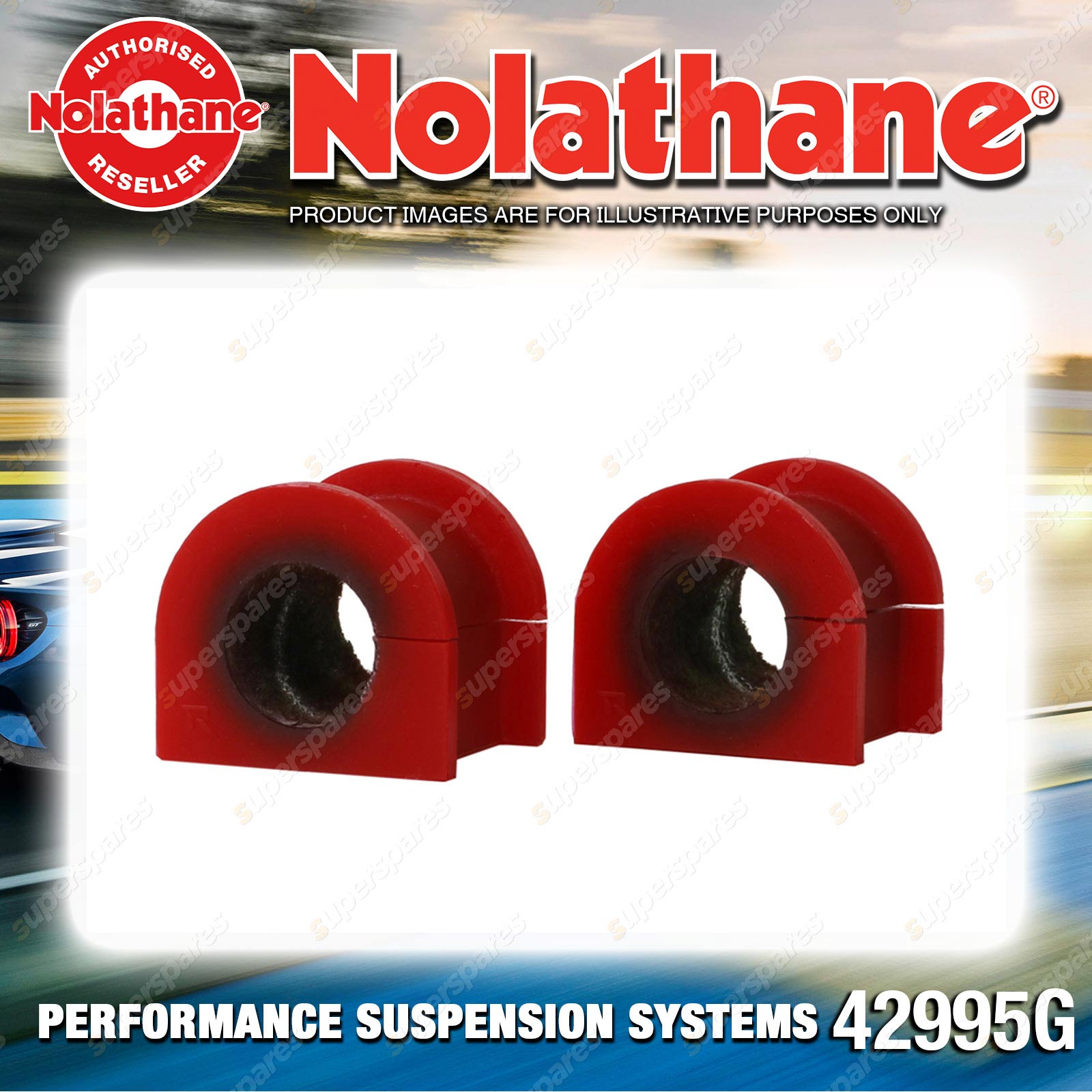 | Contents : Nolathane Front Sway bar - mount bushing Warranty : 3 Year / 60,000Kms Kit Contents : 2 Bushings, Install Guide |