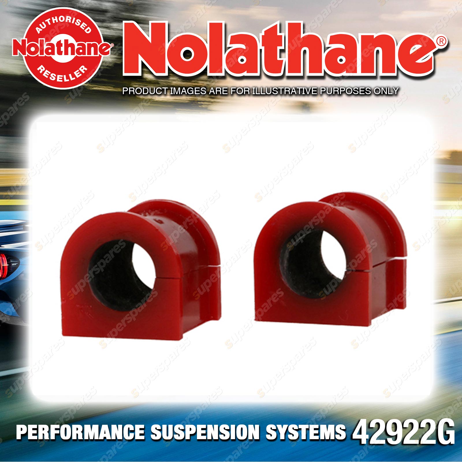 | Contents : Nolathane Front Sway bar - mount bushing Warranty : 3 Year / 60,000Kms Kit Contents : 2 Bushings, Install Guide |