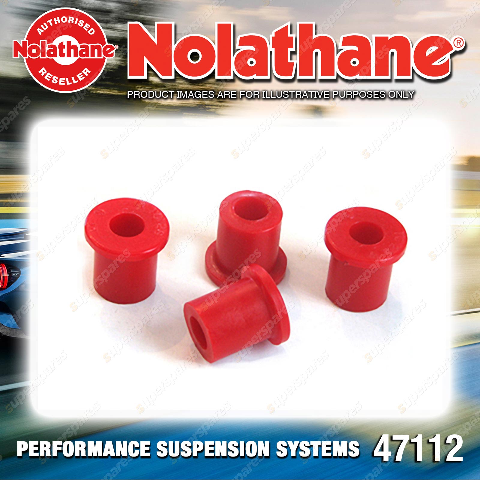 | Contents : Nolathane Rear Spring - eye rear bushing Warranty : 3 Year / 60,000Kms Kit Contents : 4 Bushings, Grease |