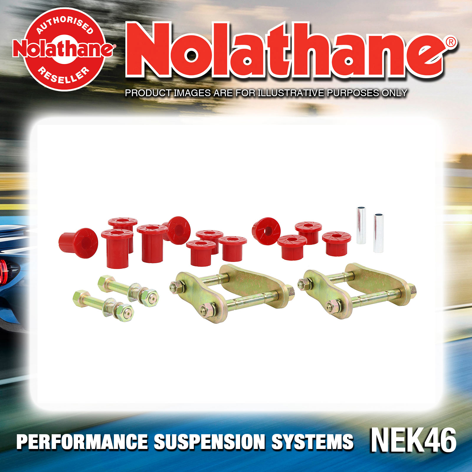 Contents : Spring - Greasable Shackle And Bushing Kit Position : Rear Warranty : 3 Year / 60,000Kms Kit Contents : 2 Shackles, 2 Pins, 12 Bushings, 2 Tubes, Install Guide, grease |
