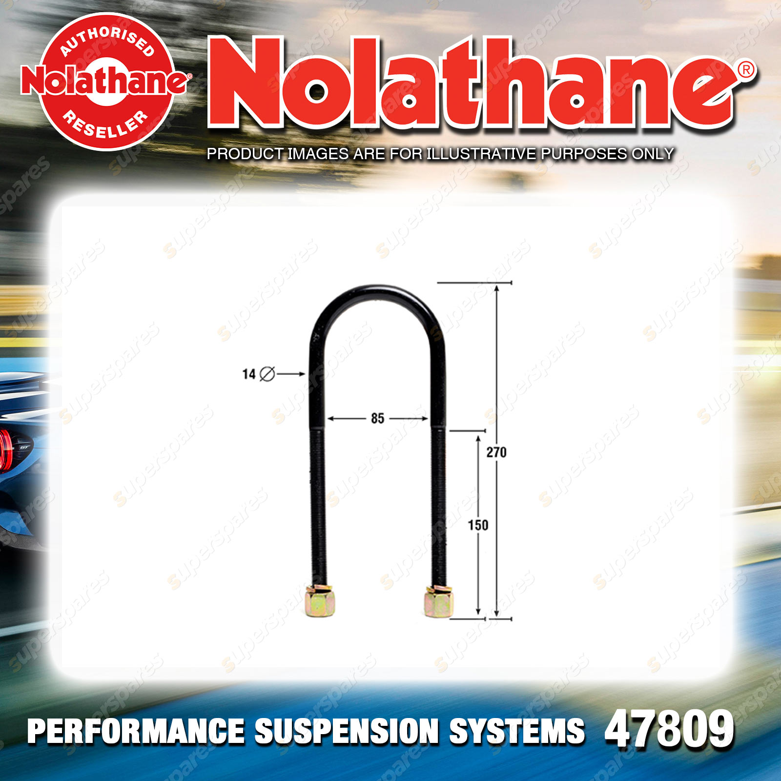 | Contents : Nolathane Rear Spring - u bolt kit Warranty : 3 Year / 60,000Kms Kit Contents : 2 Bolts, 4 Washers, 4 Nuts |
