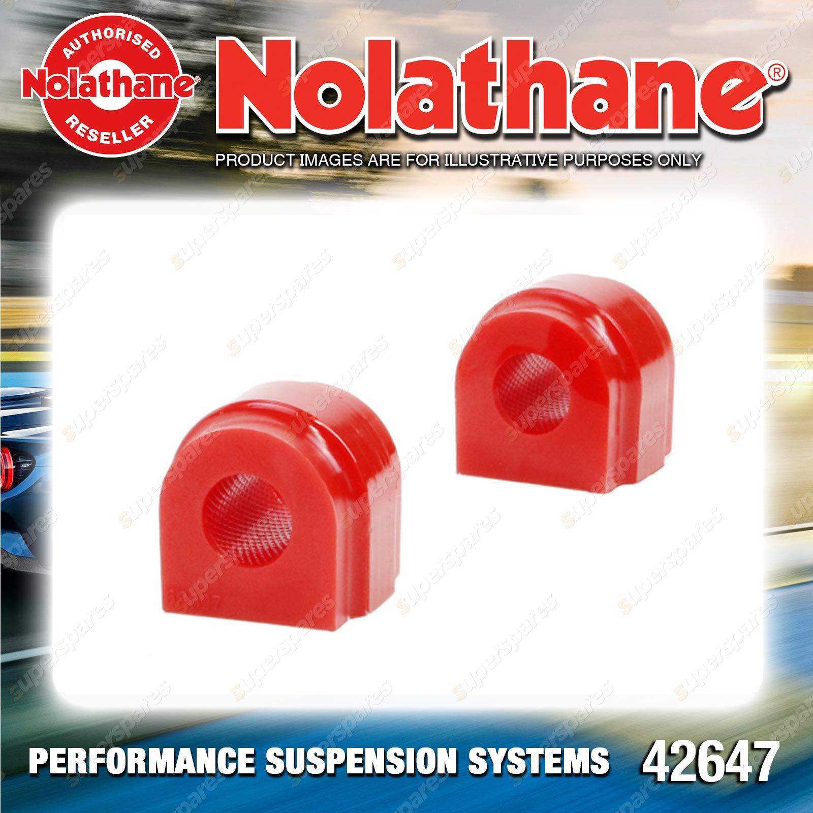 | Contents : Nolathane Rear Sway bar - mount bushing Warranty : 3 Year / 60,000Kms Kit Contents : 2 Bushings, Grease |