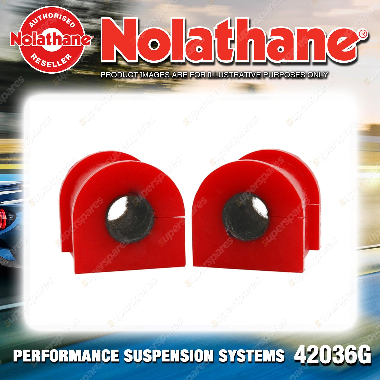 | Contents : Nolathane Rear Sway bar - mount bushing Warranty : 3 Year / 60,000Kms Kit Contents : 2 Bushings, Install Guide |