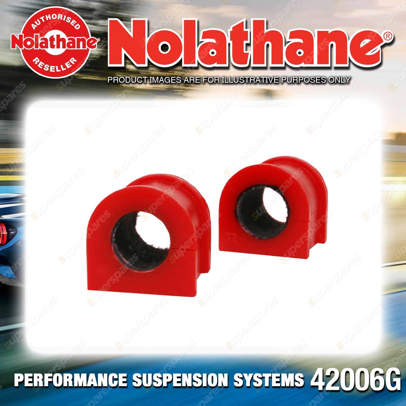| Contents : Nolathane Rear Sway bar - mount bushing Warranty : 3 Year / 60,000Kms Kit Contents : 2 Bushings, Install Guide |