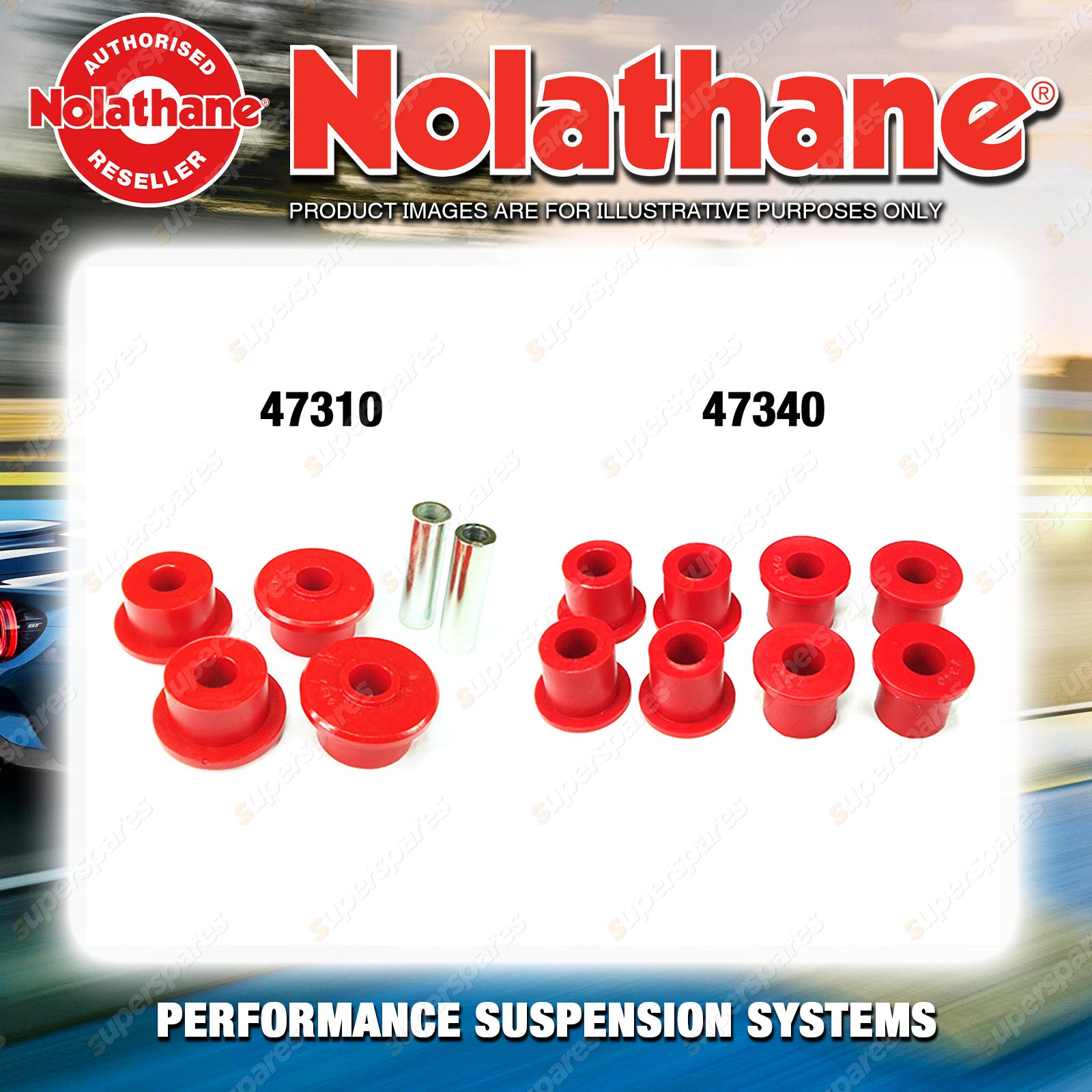 | Nolathane offers a complete range of suspension system.And Nolathane suspension bushing synchronise your suspension system for optimal safety, hangdling and performance .Whether you intend to build a Street Machine, Fast 4, go bush or simply drive to work,suspension bushes are the link between your vehicle and it's springs,struts and shock absorbers.Suspension bushes provide the movement and/or mounting points in your vehicle's suspension system. |