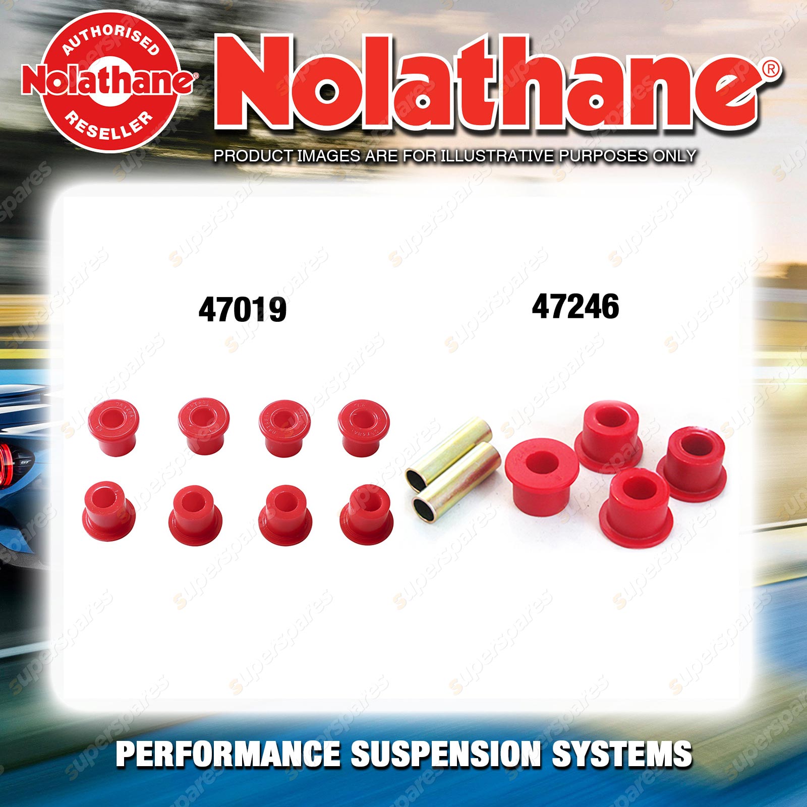 | Nolathane offers a complete range of suspension system.And Nolathane suspension bushing synchronise your suspension system for optimal safety, hangdling and performance .Whether you intend to build a Street Machine, Fast 4, go bush or simply drive to work,suspension bushes are the link between your vehicle and it's springs,struts and shock absorbers.Suspension bushes provide the movement and/or mounting points in your vehicle's suspension system. |