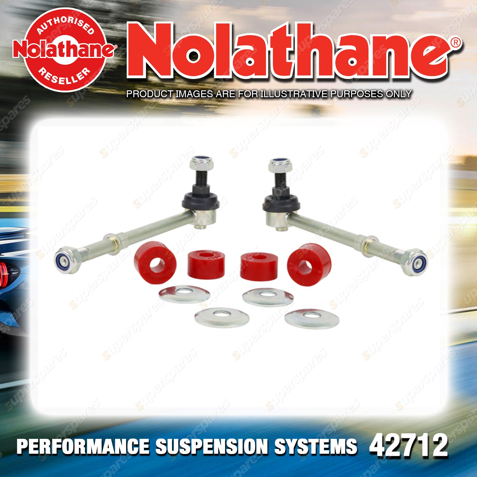 | Contents : Nolathane Sway bar - link 12mm ball stud Warranty : 3 Year / 60,000Kms Kit Contents : 2 Links, 4 Bushings, 4 Washers |