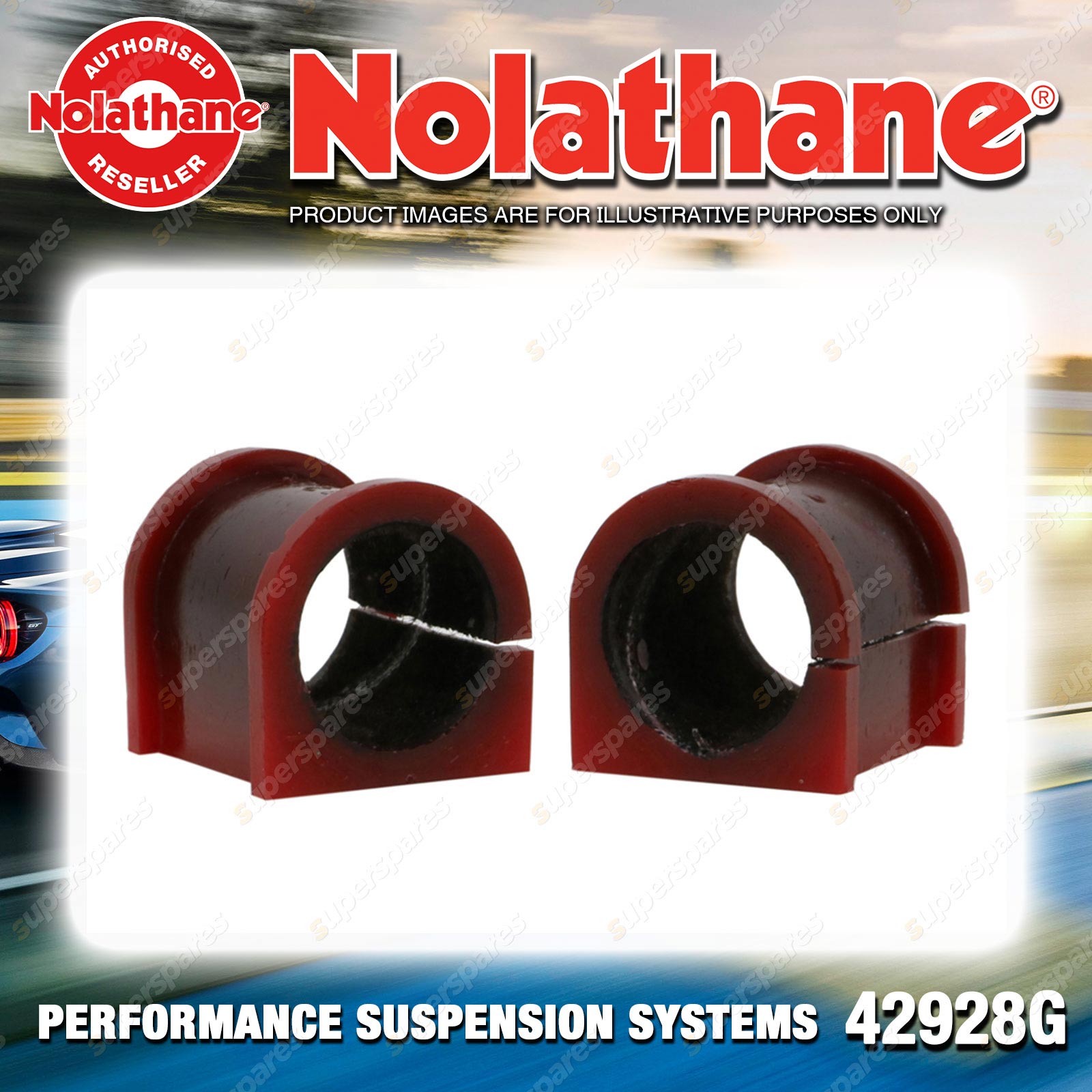 | Contents : Nolathane Sway bar - mount bushing Warranty : 3 Year / 60,000Kms Kit Contents : 2 Bushings, Install Guide |