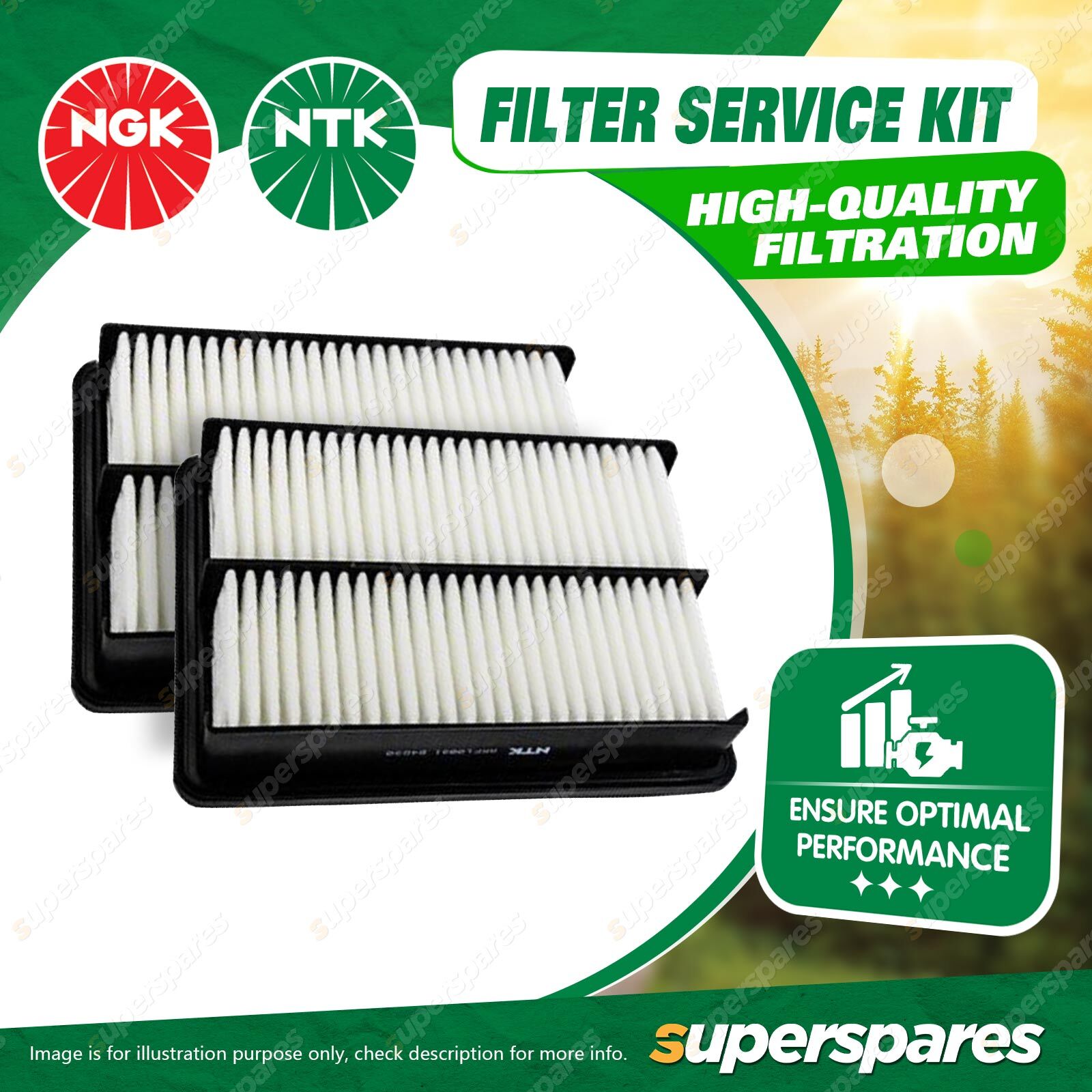 The NTK Filter Service Kit typically refers to a maintenance kit designed for vehicles, specifically for servicing the air, oil, and fuel filtration systems.The kit includes high-quality filters that ensure clean fuel delivery to the engine, optimizing combustion and improving fuel efficiency.