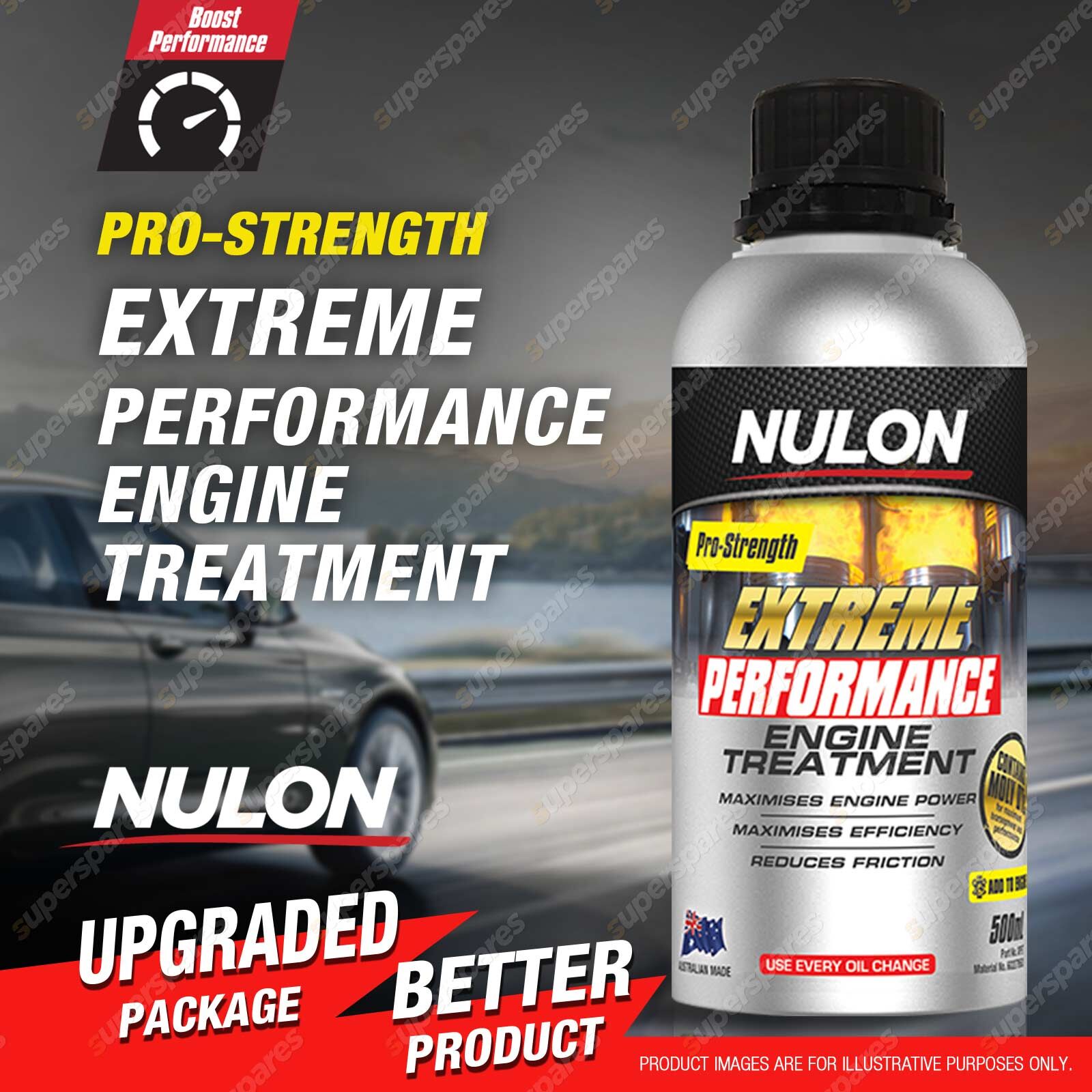 Nulon Pro-Strength Extreme Performance Enginge Treatment is proven to dramatically reduce the friction of contacting metal surfaces within any engine. The high tech formula actively creates a low friction sacrificial barrier immediately when metal to metal contact occurs. Moly DTC molecules within the engine oil then continuously replenish this high strength barrier as it depletes. Reducing internal engine friction reduces metal wear, heat and allows the engine to run more efficiently giving you more power and better fuel economy. |