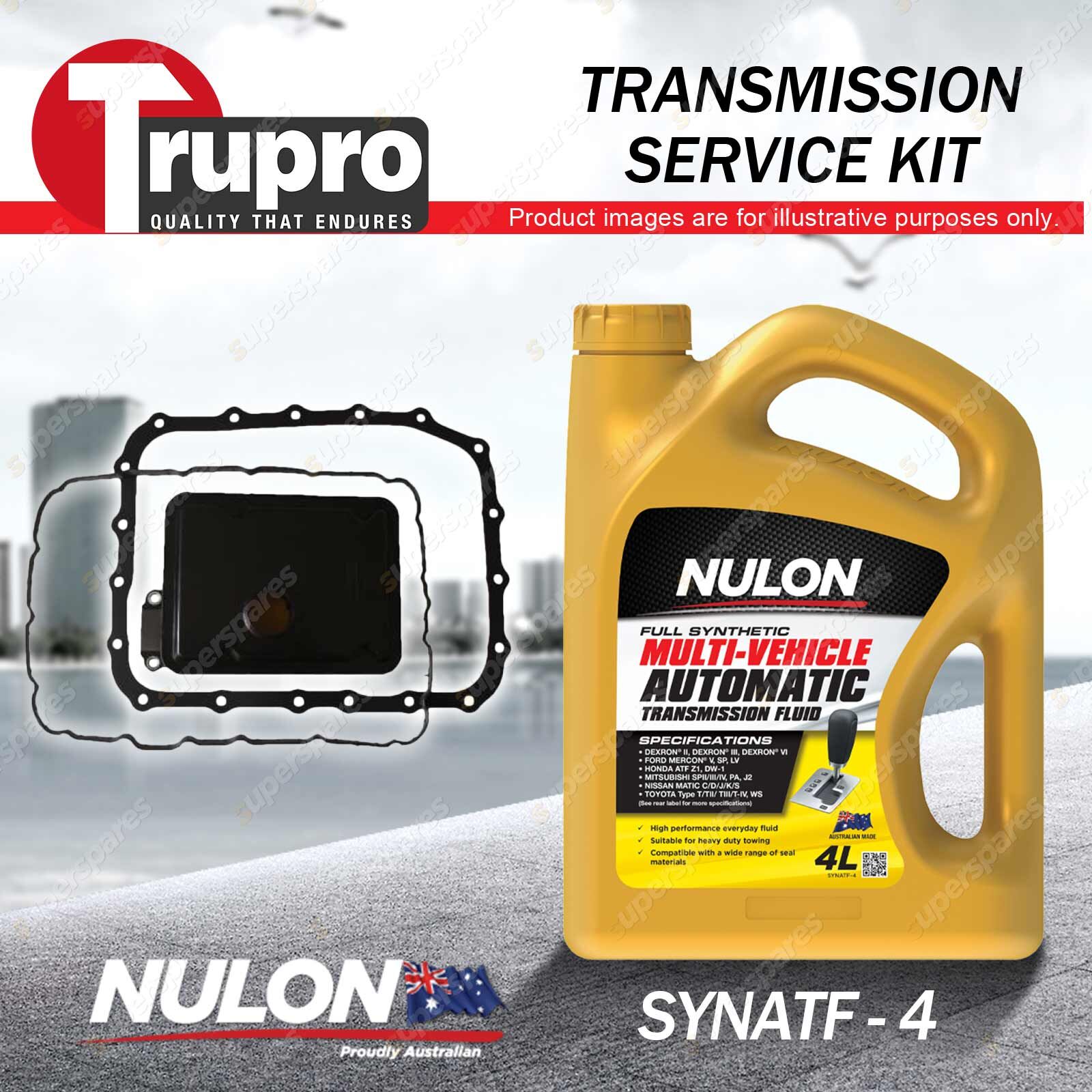 Note: eBay's compatibility table is not accurate in some cases. Please refer to the following information we have provided for you. Copyright © 2014 - 2023 Superspares. All rights reserved. Contents: 1 x Trupro Transmission Filter Service Kit 1 x Nulon Full Synthetic Multi Vehicle Automatic Transmission Fluid (4L) Suit Vehicle: