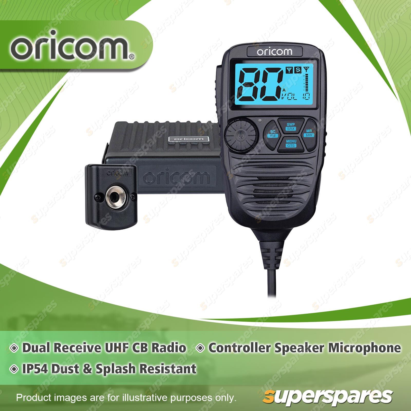 Contents: 1 x Oricom IP54 Dual Receive UHF CB Radio |