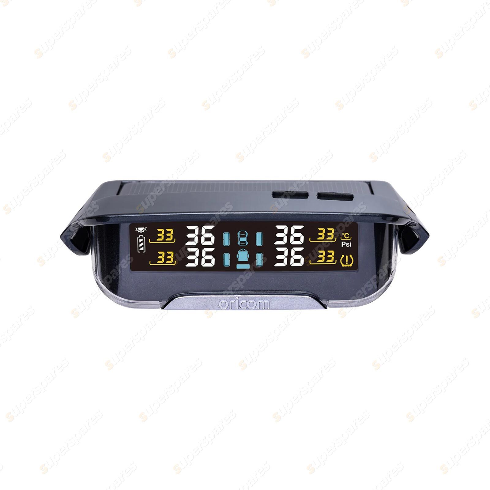 Contents: 1 x Oricom Tyre Pressure Monitoring System Technical Specifications: Sensor: Display: Product contains button battery/(ies).