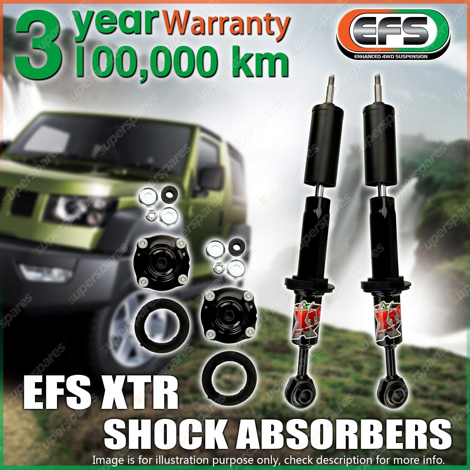 | SUIT:TOYOTA LANDCRUISER 200 SERIES 10/2007 ON - 35mm lift CONTENTS:Pair Front EFS XTR Shock Absorbers (Strut Top Cap And Fitting Kit Included)