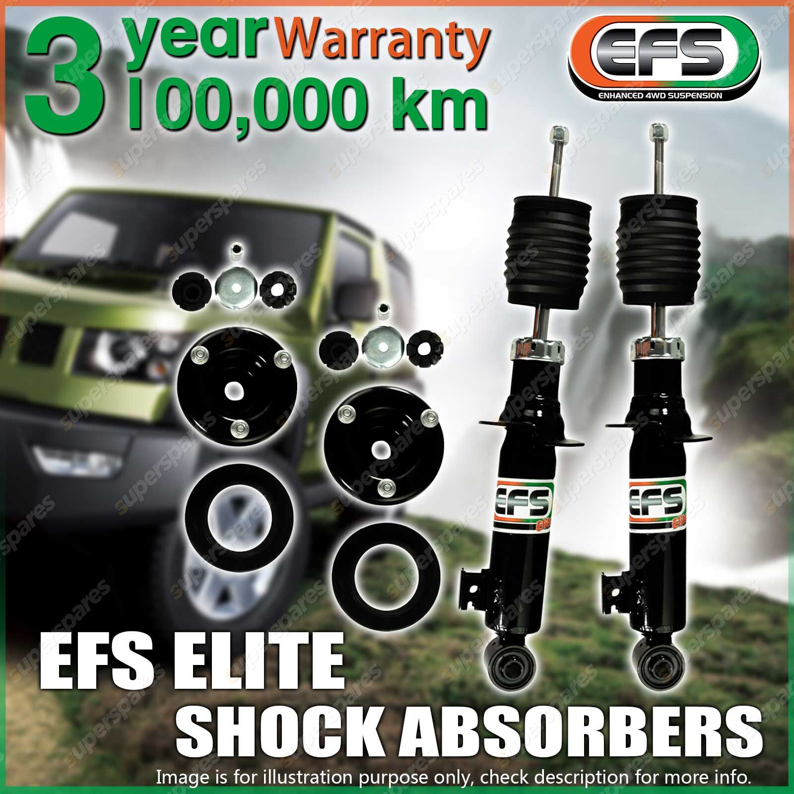 | Specifications: EFS Elite Shock Absorber----The EFS Elite Shock Absorber Range is developed for the 4wd owner who only pursues the best for their 4wd. EFS is built with high quality Internal & external components combined together to give you excellent performance and longevity. EFS shock absorbers are vehicle & height specific with valving developed to suit each vehicle. "Not a one shock suits all approach".