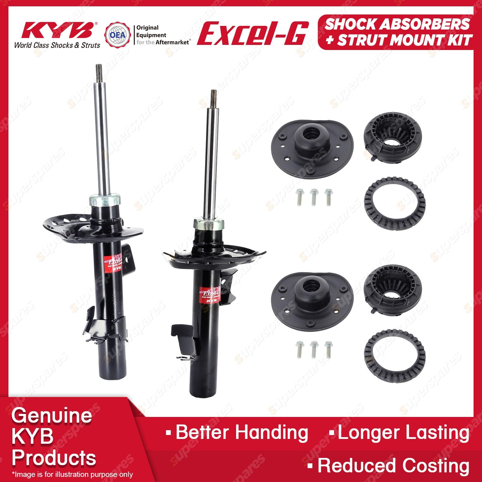The best choice to replace your MacPherson Strut to ensure comfort and a steady ride. Our patented valving and the use of pressurised nitrogen gas in the Excel-G range will restore riding comfort and, at the same time, dramatically reduce the aeration or foaming that commonly occurs in other shock absorbers. Outstanding features include: * Multi-lip oil seal extends life.