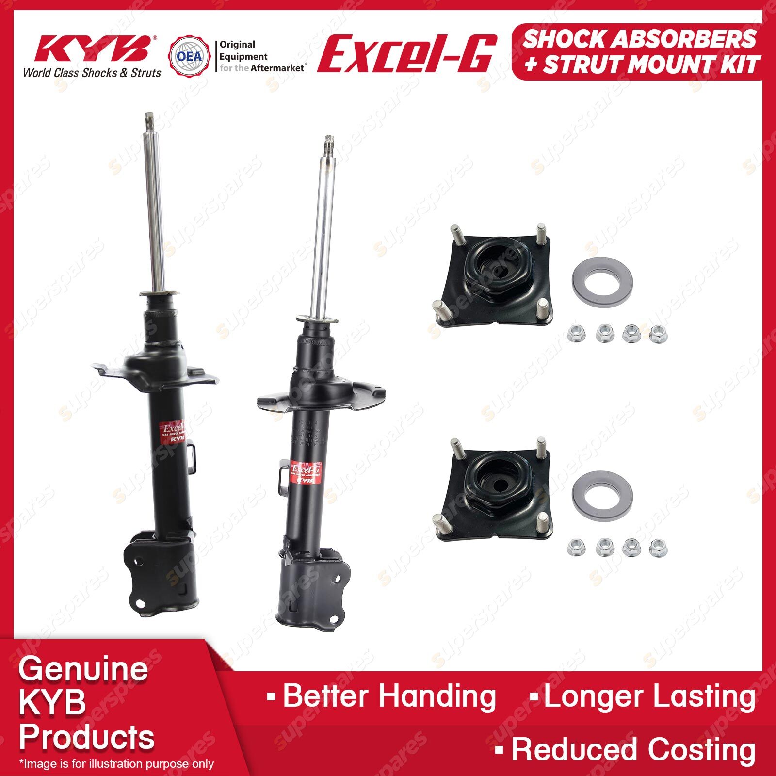 The best choice to replace your MacPherson Strut to ensure comfort and a steady ride. Our patented valving and the use of pressurised nitrogen gas in the Excel-G range will restore riding comfort and, at the same time, dramatically reduce the aeration or foaming that commonly occurs in other shock absorbers. Outstanding features include: * Multi-lip oil seal extends life.