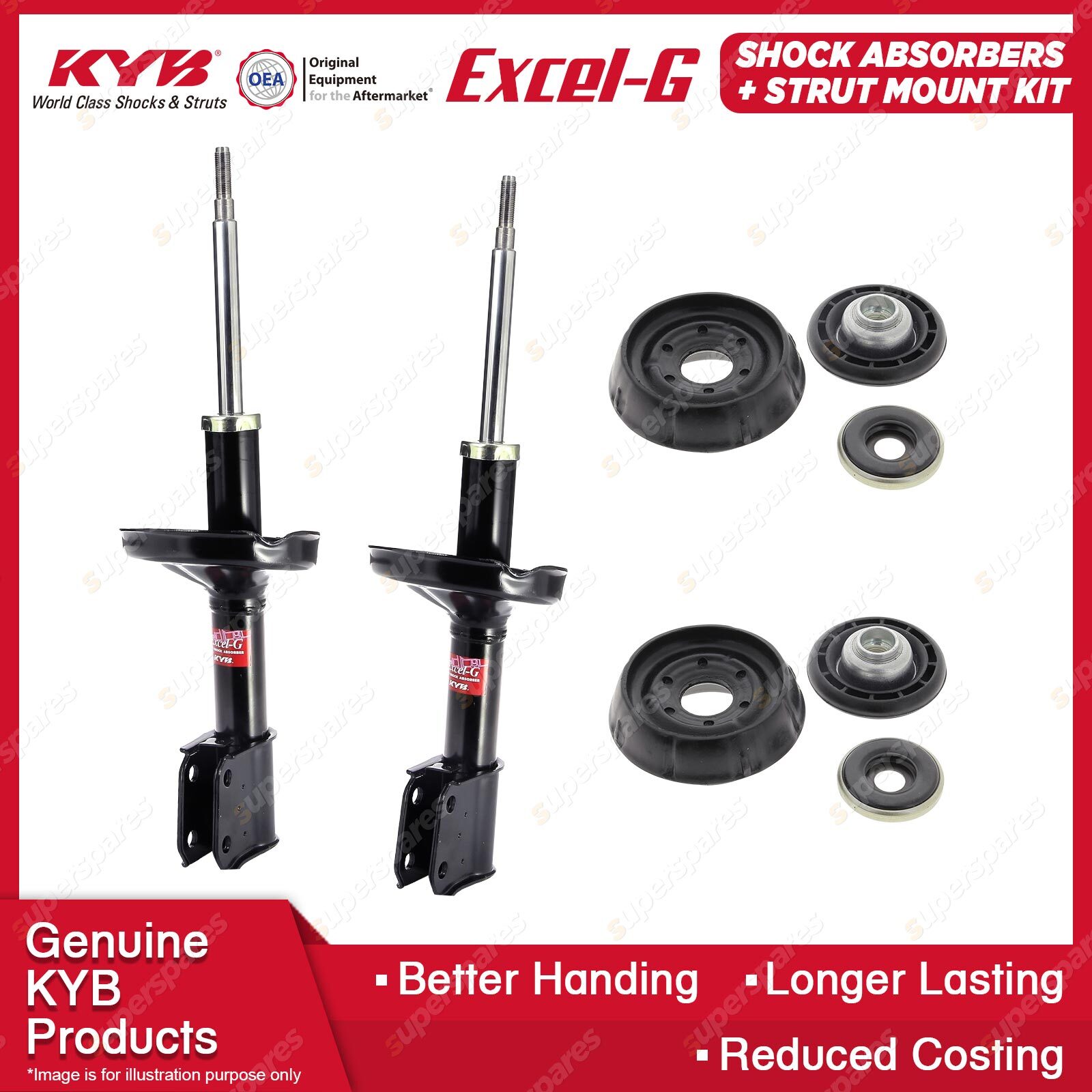The best choice to replace your MacPherson Strut to ensure comfort and a steady ride. Our patented valving and the use of pressurised nitrogen gas in the Excel-G range will restore riding comfort and, at the same time, dramatically reduce the aeration or foaming that commonly occurs in other shock absorbers. Outstanding features include: * Multi-lip oil seal extends life.
