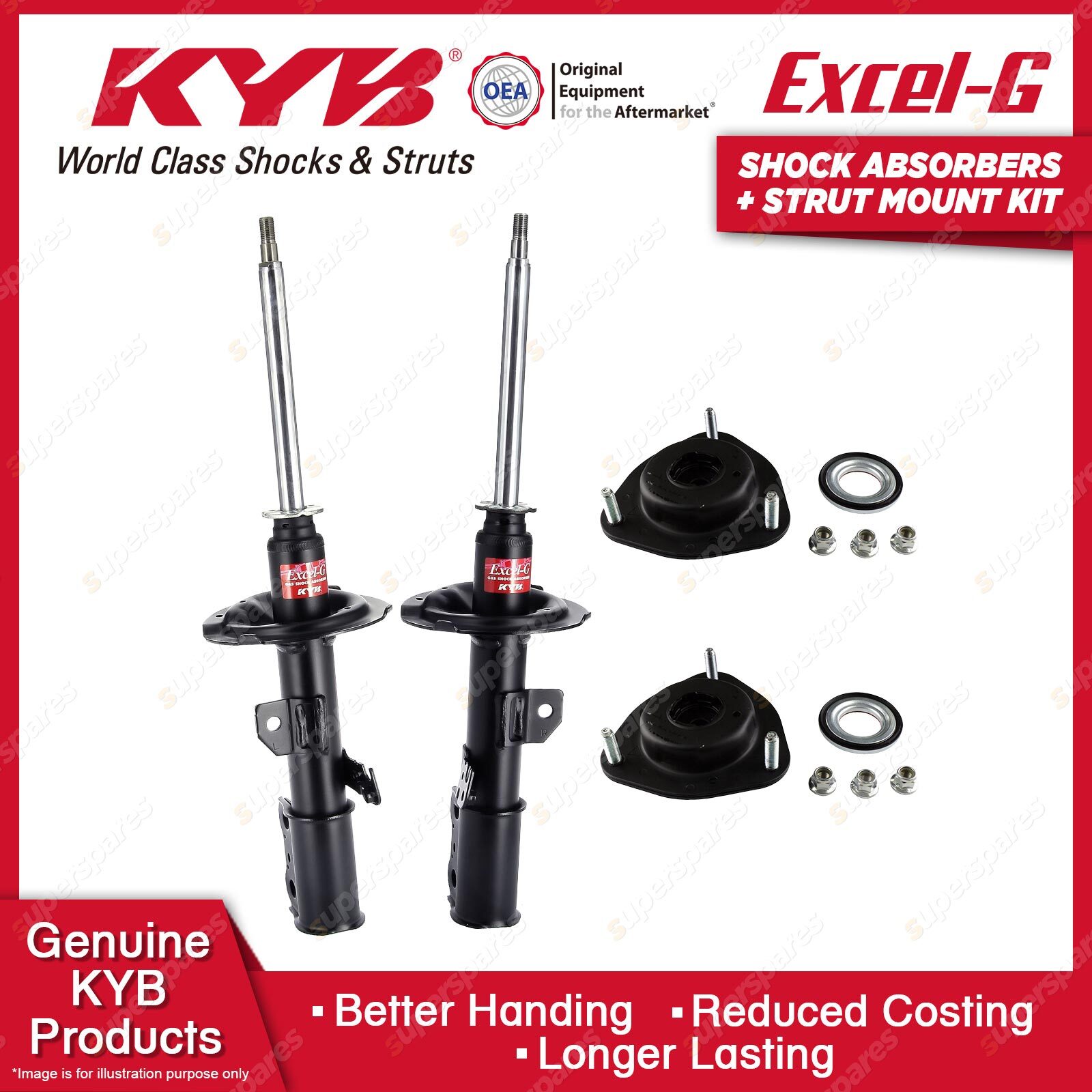 The best choice to replace your MacPherson Strut to ensure comfort and a steady ride. Our patented valving and the use of pressurised nitrogen gas in the Excel-G range will restore riding comfort and, at the same time, dramatically reduce the aeration or foaming that commonly occurs in other shock absorbers. Outstanding features include: * Multi-lip oil seal extends life.