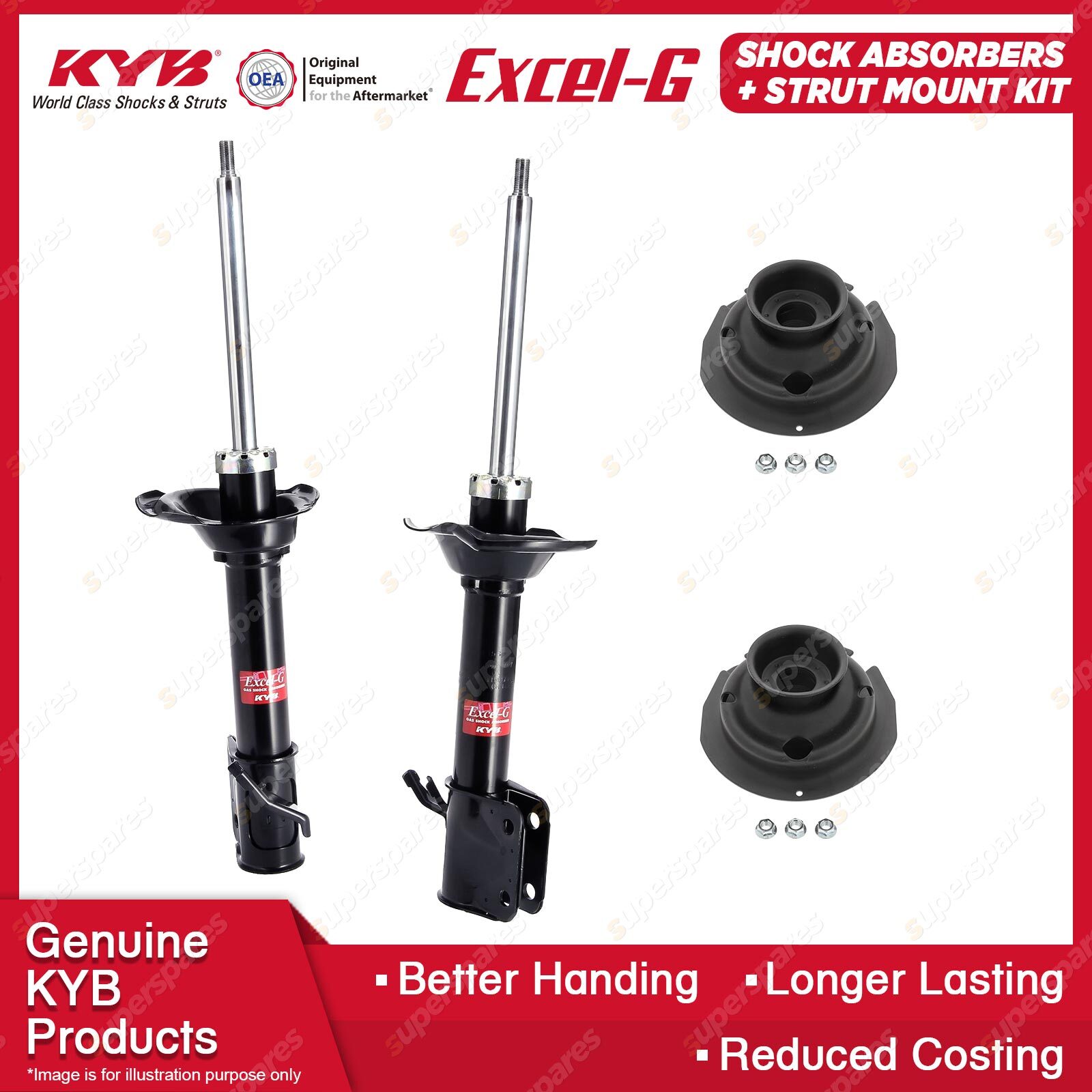The best choice to replace your MacPherson Strut to ensure comfort and a steady ride. Our patented valving and the use of pressurised nitrogen gas in the Excel-G range will restore riding comfort and, at the same time, dramatically reduce the aeration or foaming that commonly occurs in other shock absorbers. Outstanding features include: * Multi-lip oil seal extends life.
