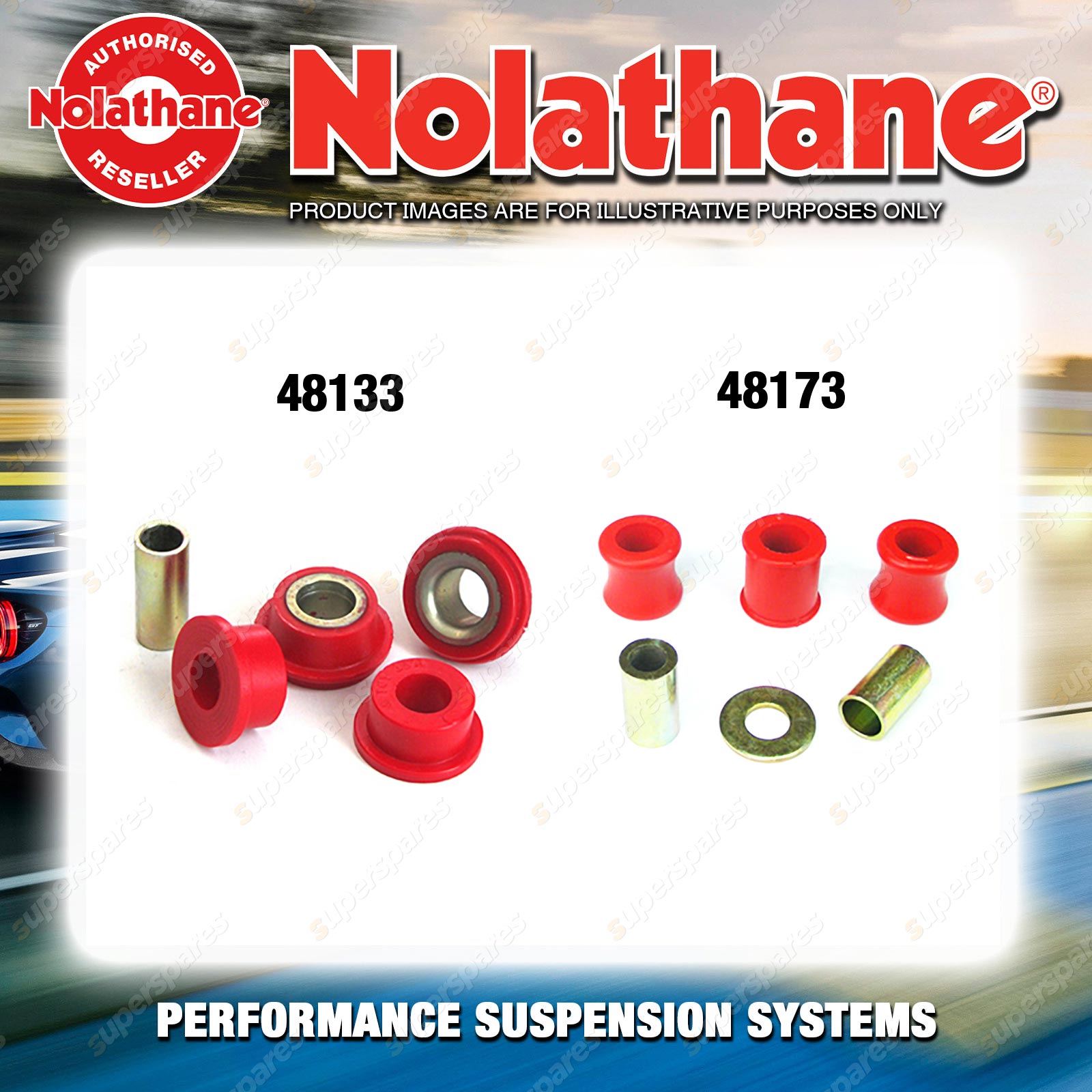| Nolathane offers a complete range of suspension system.And Nolathane suspension bushing synchronise your suspension system for optimal safety, hangdling and performance .Whether you intend to build a Street Machine, Fast 4, go bush or simply drive to work,suspension bushes are the link between your vehicle and it's springs,struts and shock absorbers.Suspension bushes provide the movement and/or mounting points in your vehicle's suspension system. |