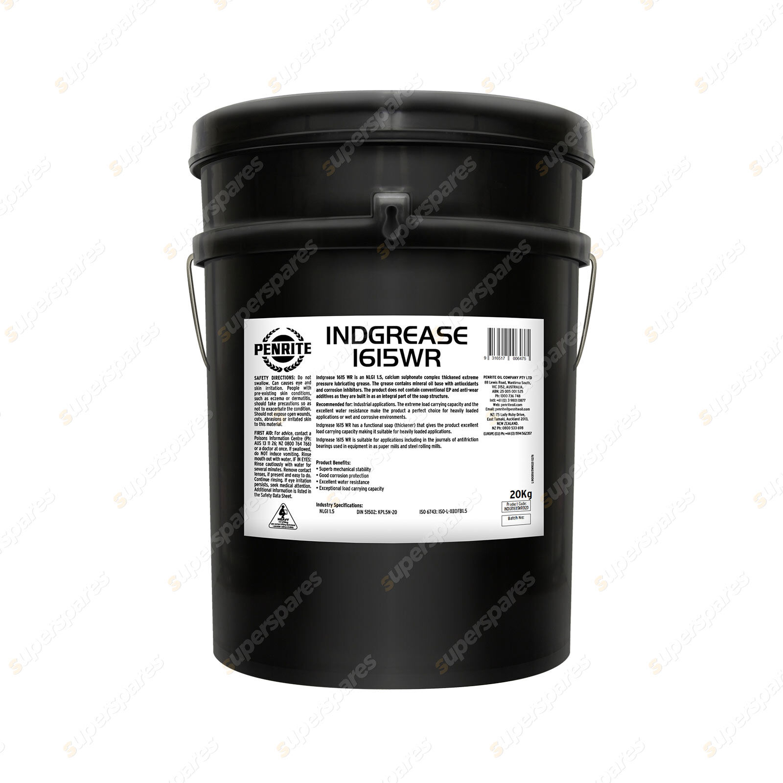 1 x Penrite Indgrease 1615WR NLGI 1.5 extreme pressure lubricating grease 20KG
