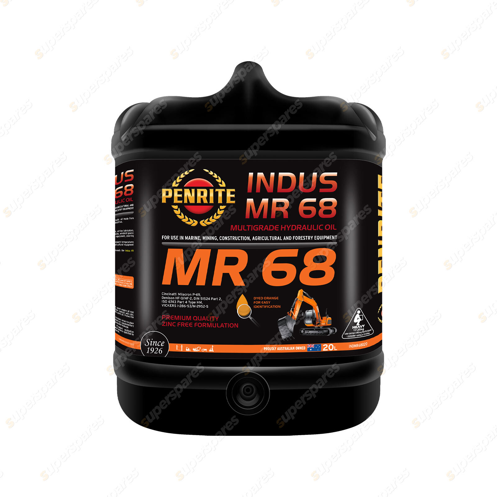 1 x Penrite Indus MR 68 Hydraulic Oil Zinc Free high quality multi-grade 20L