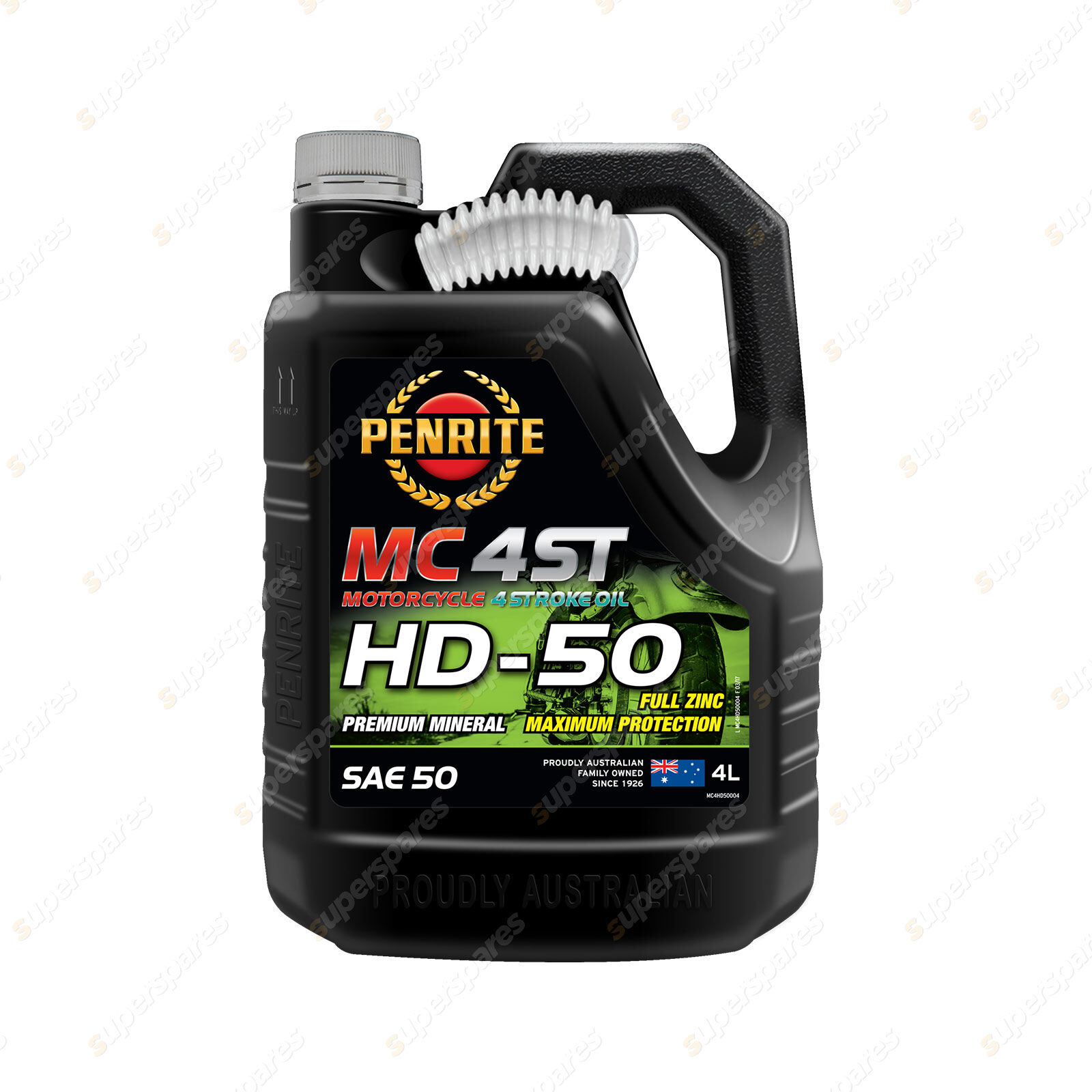 1 x Penrite Premium Mineral MC-4ST HD 50 SAE 50 Motorcycle Engine Oil 4L