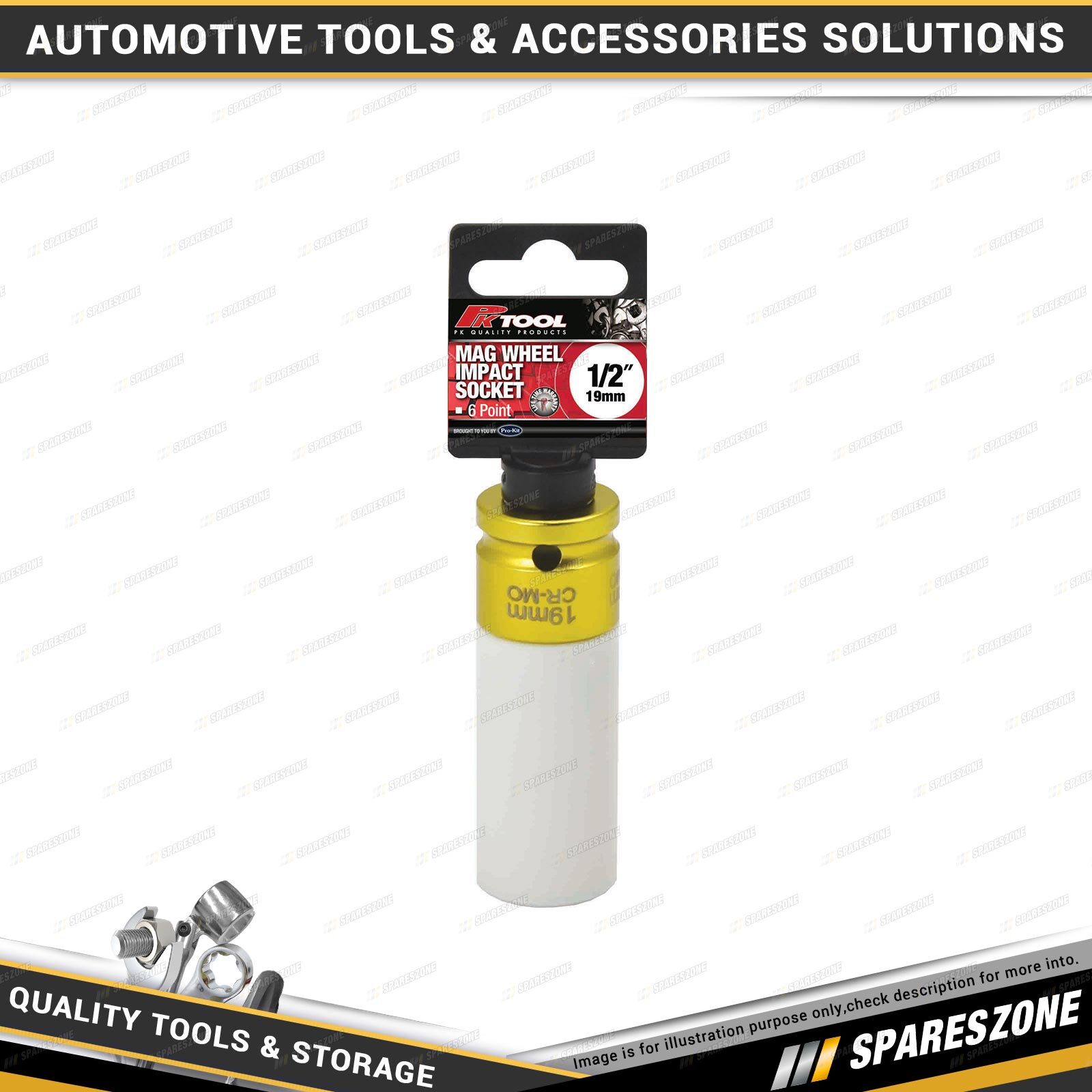 Contents : 1 x PK Tool 19mm 1/2 Inch Drive Mag Wheel Deep Impact Socket