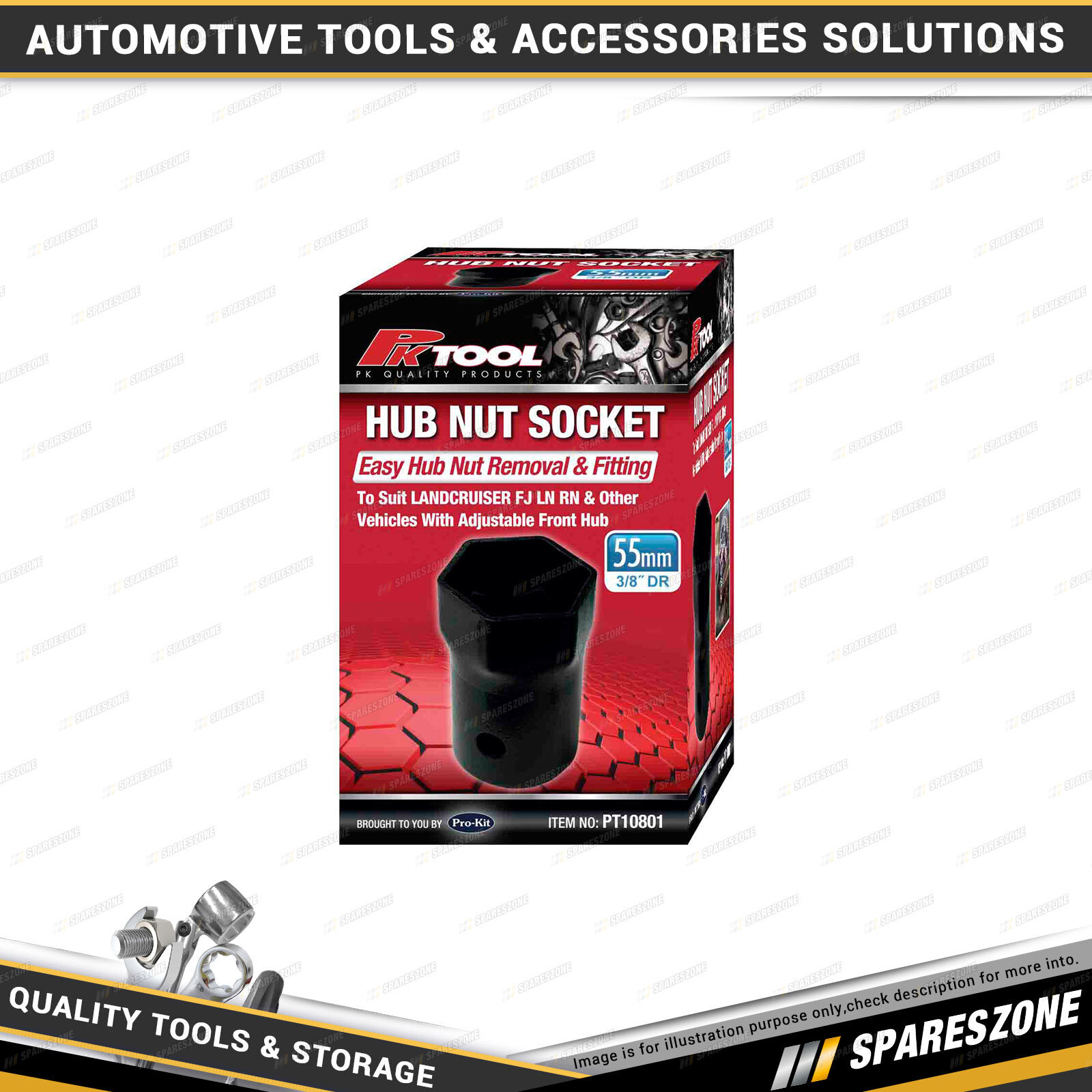 Contents : 1 x PK Tool 3/8" Dr 55mm 6 Point Socket