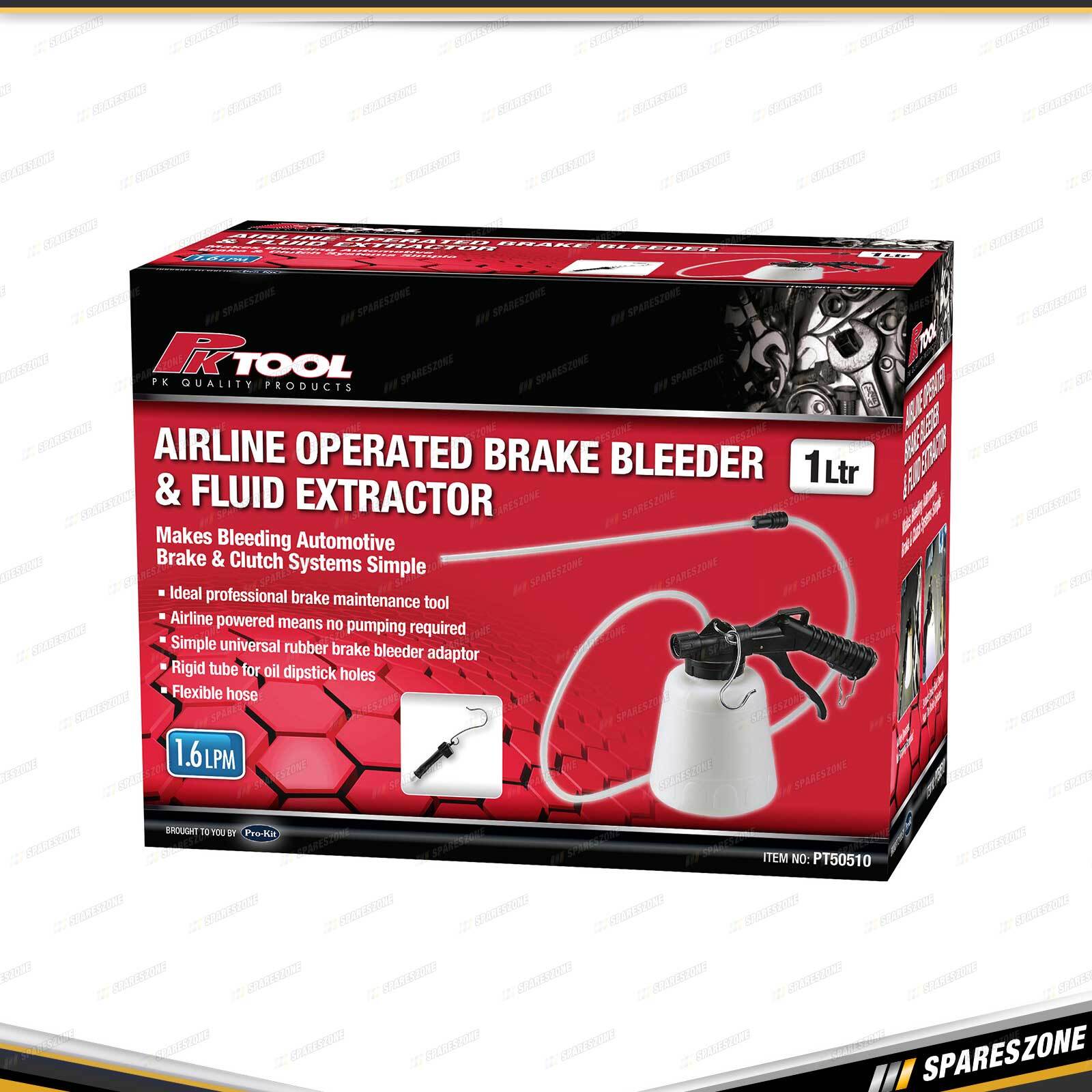 Contents : 1 x PK Tool Air Operated Brake Bleeder & Fluid Extractor