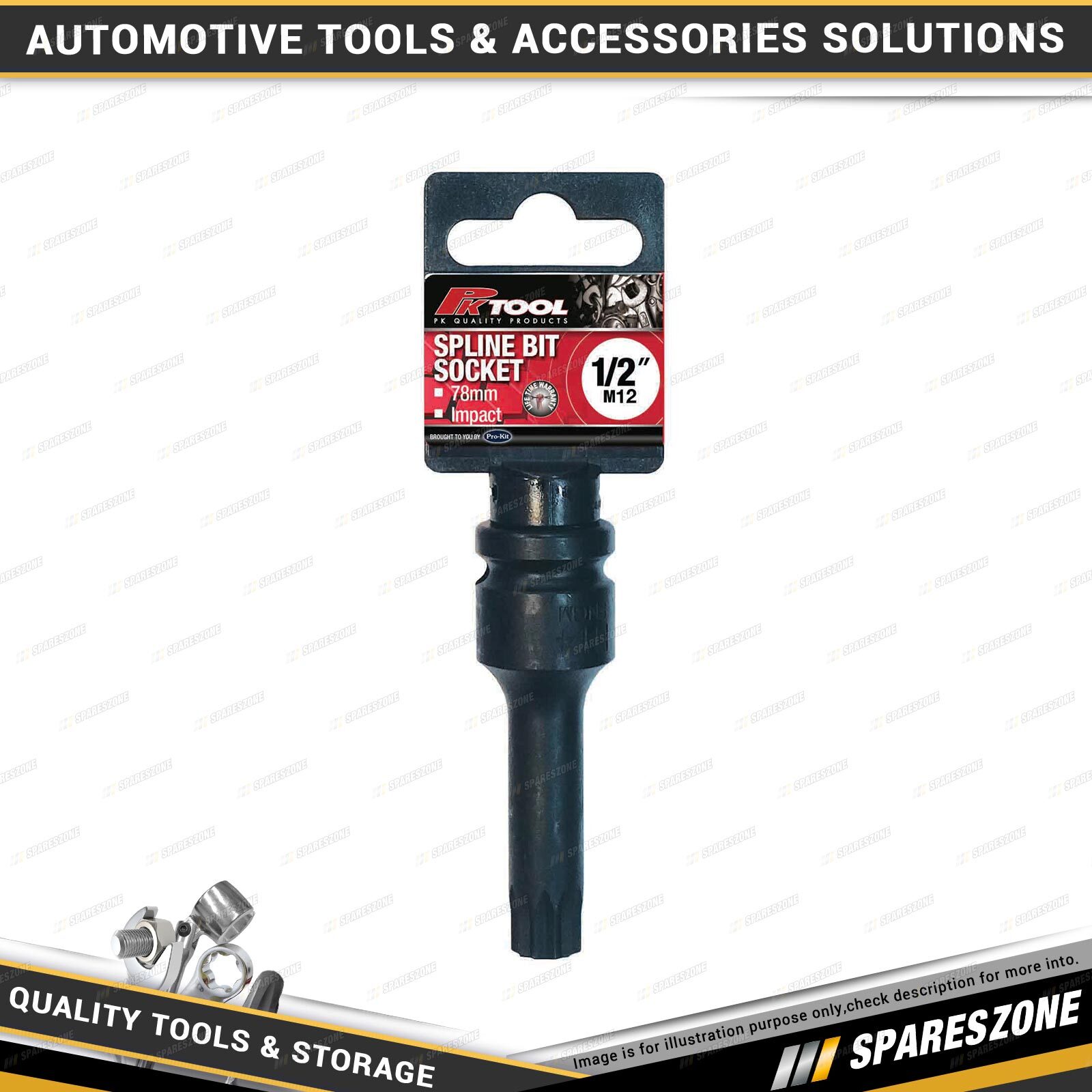 Contents : 1 x PK Tool M12 1/2 Inch Drive 78mm Impact Spline Bit Socket