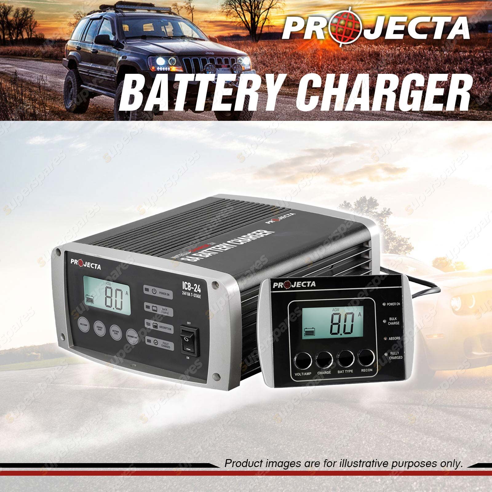 Contents : Projecta 24V Automatic 8 Amp 7 Stage Battery Charger Multi Chemistry Lithium