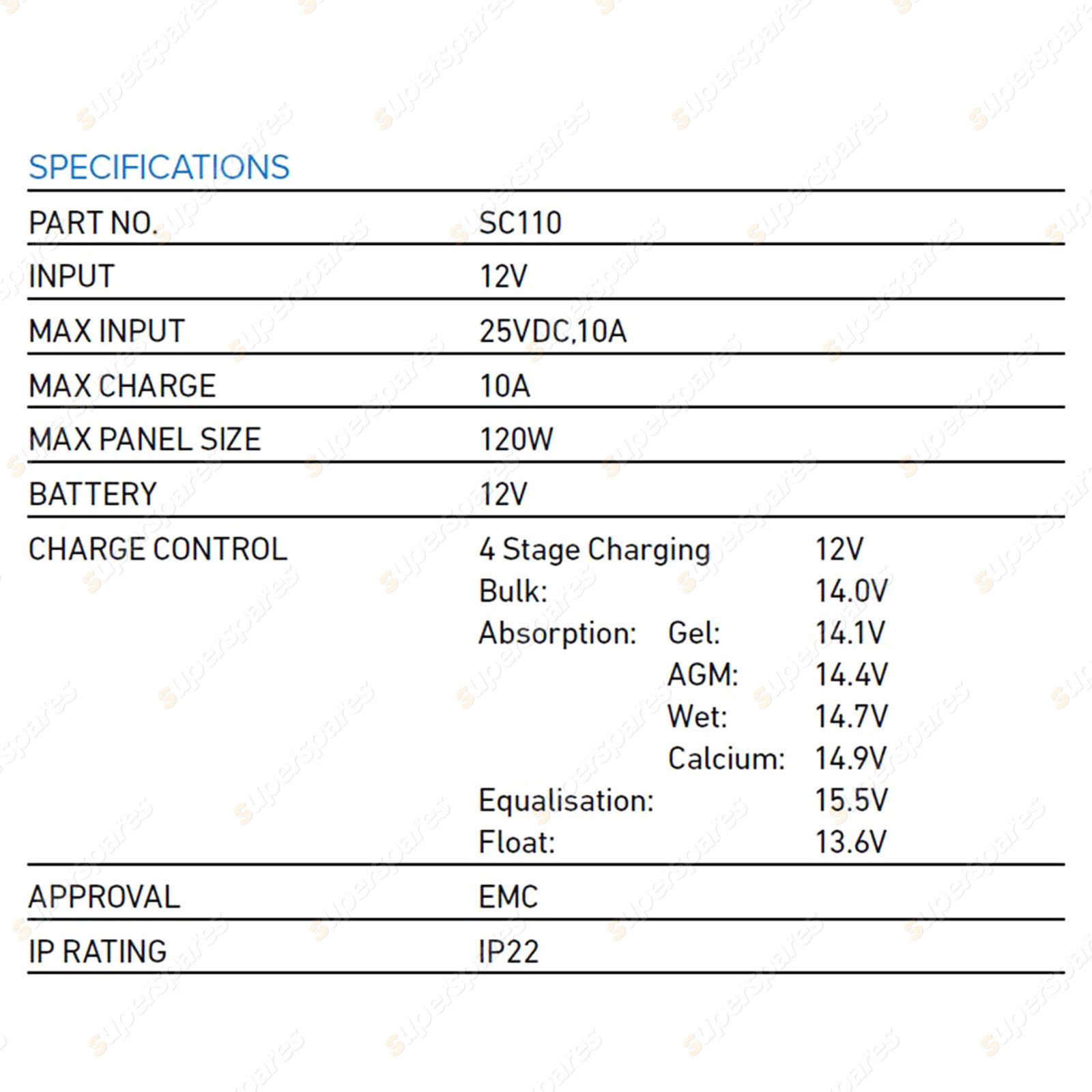 Contents : Projecta Automatic 12V 10A 4 Stage Sophisticated Solar Charge Controller
