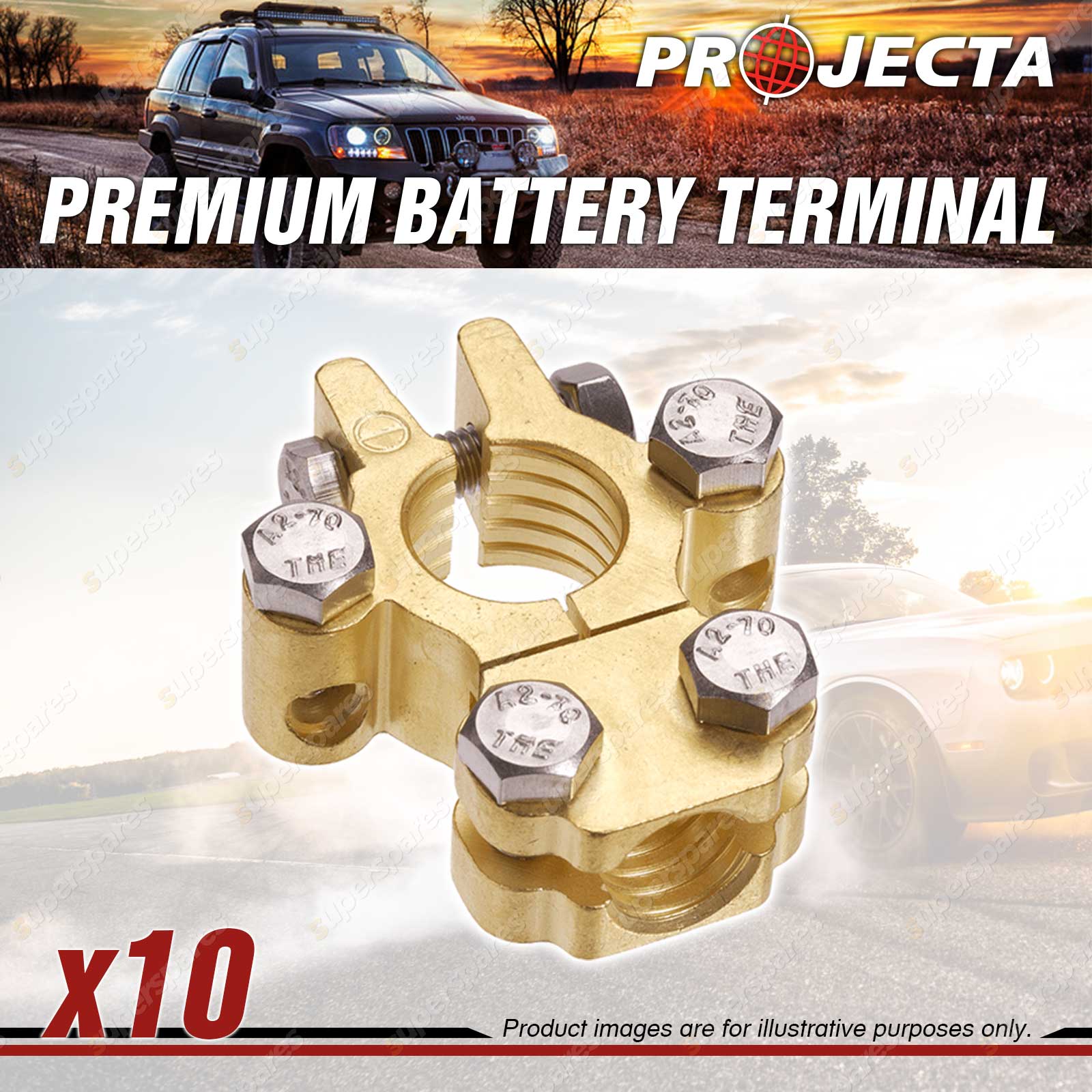 Premium Battery Terminal Negative - Forged Brass Heavy-Duty Saddle with Dual Auxiliary Forged from a solid brass bar,these terminals deliver up to 40% better electrical conductivity than lead or standard brass terminals. They feature 304 grade stainless steel hardware for longer life and better performance. Each terminal uses a unique spiral thread to bite into the battery post,ensuring a solid connection. | |||||||||||||