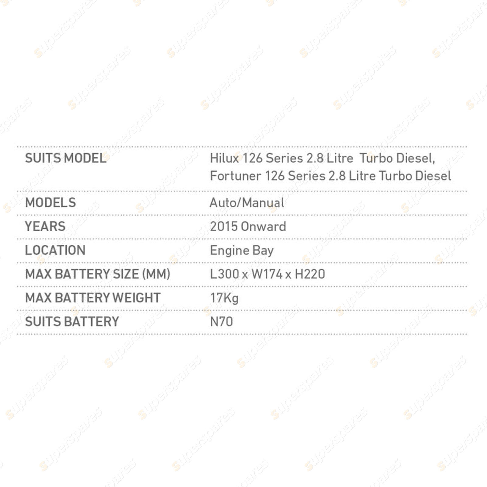 Contents : Projecta Heavy-Duty Dual Battery Tray for Toyota Hilux Fortuner 126 Series 2.8L