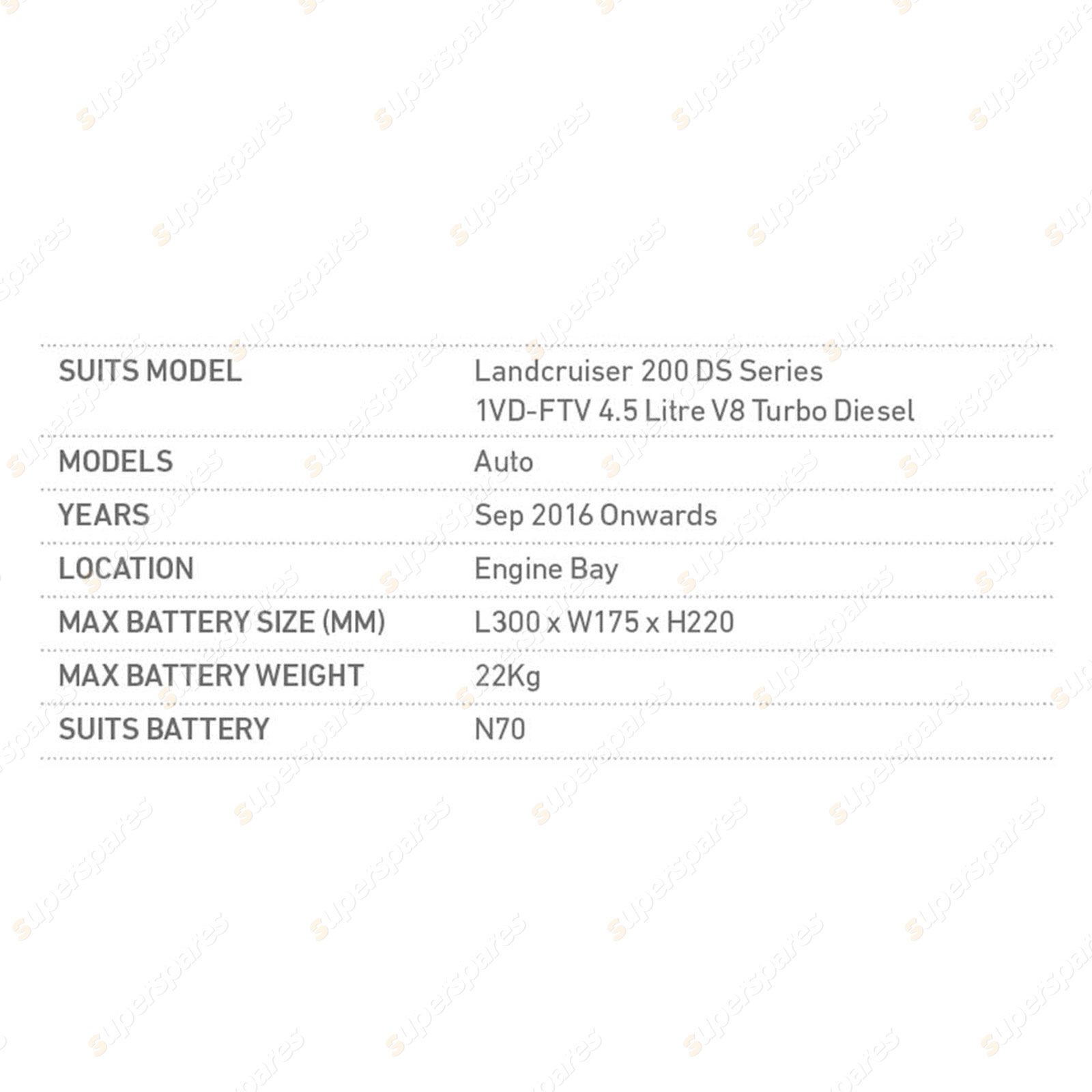 Contents : Projecta Heavy-Duty Dual Battery Tray for Toyota Landcruiser 200 DS Series 4.5L
