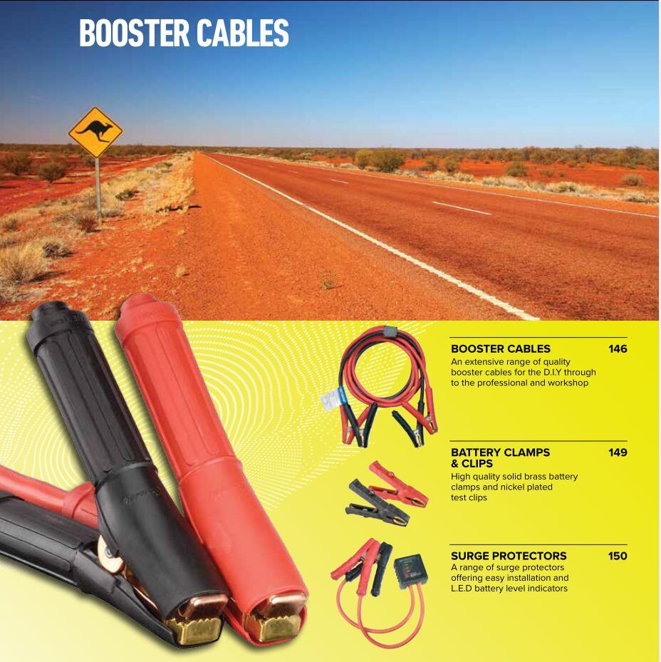 Workshop Booster Cables - Pure Copper Cable Quality constructed booster cables suitable for 12V or 24V batteries. Ideal for workshop use suiting larger 8 cylinder vehicles,construction and earth moving machinery. FEATURES Surge protection Storage bag Pure copper cable Fully insulated clamp WORKSHOP SPECIFICATIONS - PURE COPPER CABLE - BRASS TEETH CLAMP