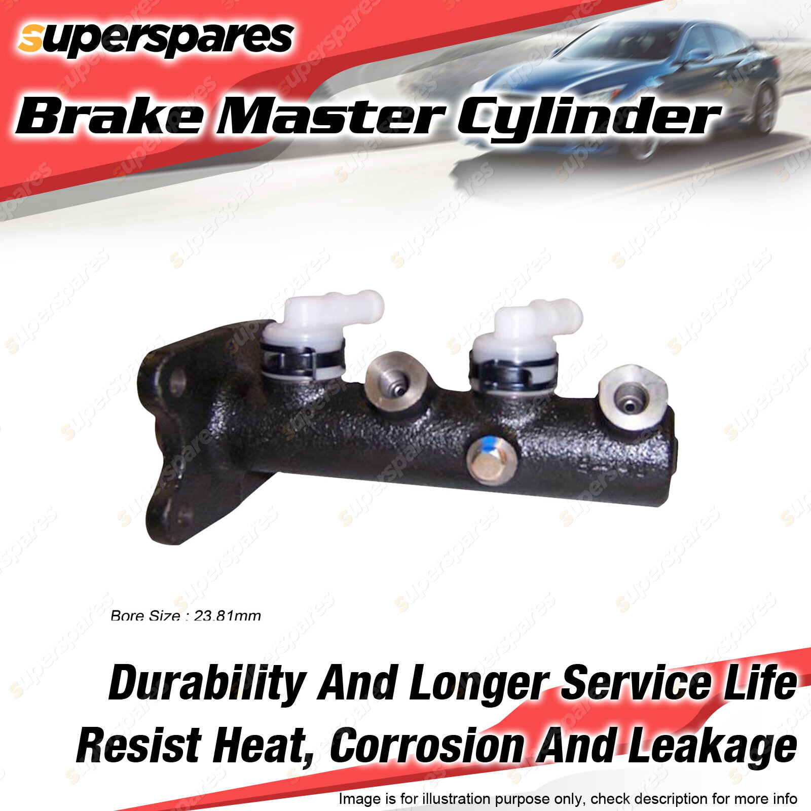 Contents : 1 x Superspares Brake Master Cylinder Bore Size : 23.81mm Front Port : M10x1 Inv Rear Port : 10 x 1 Inv | ![]() |