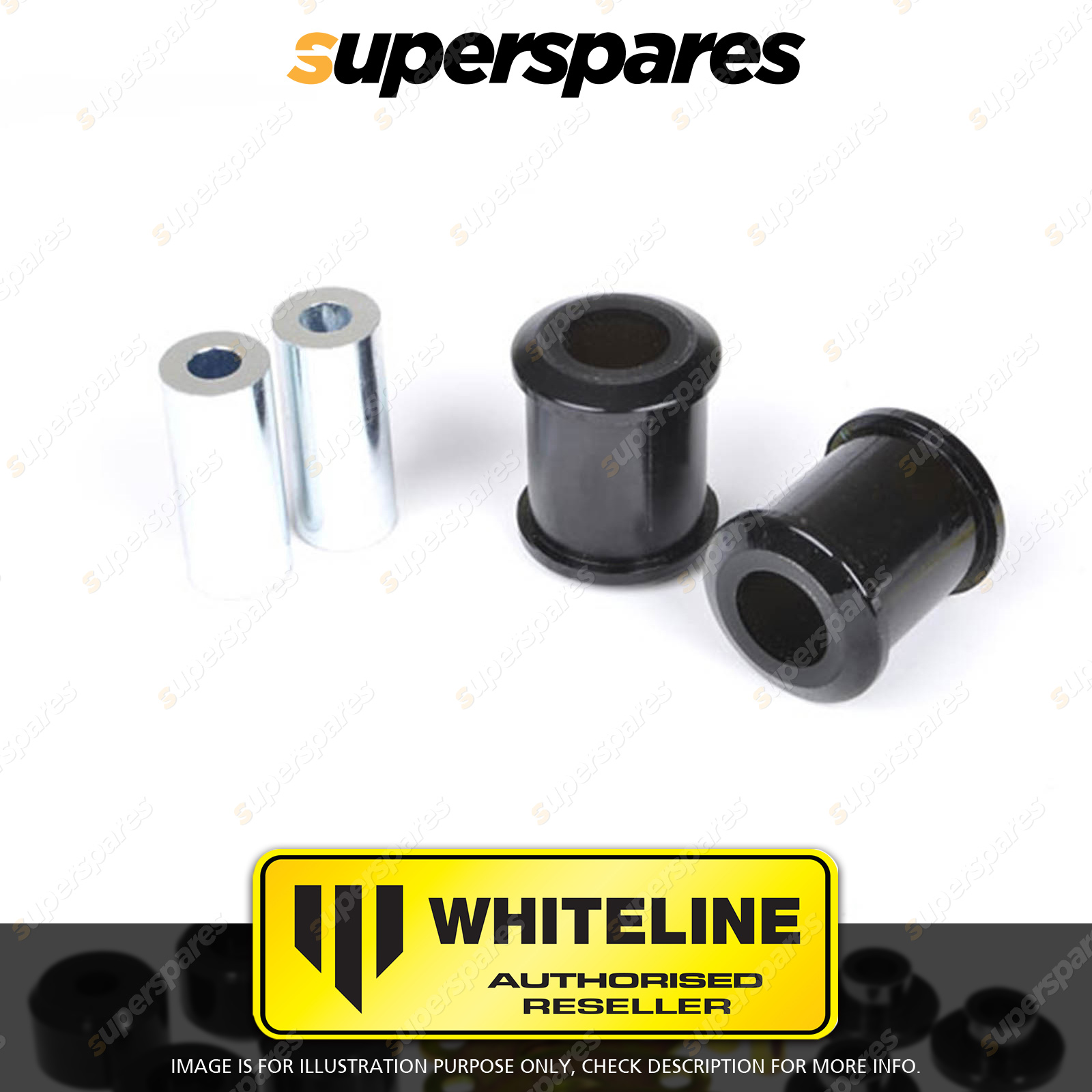 | Contents : Whiteline Rear Control arm - lower Rear inner bushing Warranty : 3 Year / 60,000Kms Kit Contents : 2 Bushings, 2 Tubes, Grease |