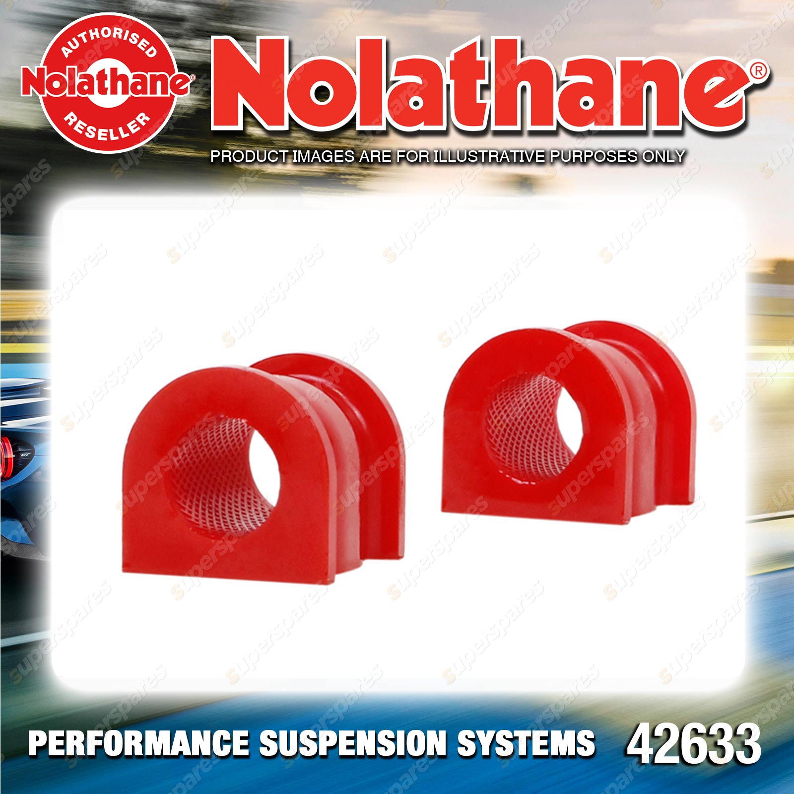 | Contents : Nolathane Rear Sway bar - mount bushing Warranty : 3 Year / 60,000Kms Kit Contents : 2 Bushings, Grease |