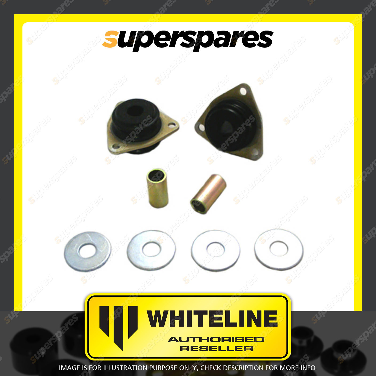 | Contents : Whiteline Rear Trailing arm - lower Front bushing Warranty : 3 Year / 60,000Kms Kit Contents : 2 Bushings, 2 Tubes, 2 Washers, Install Guide, Grease |