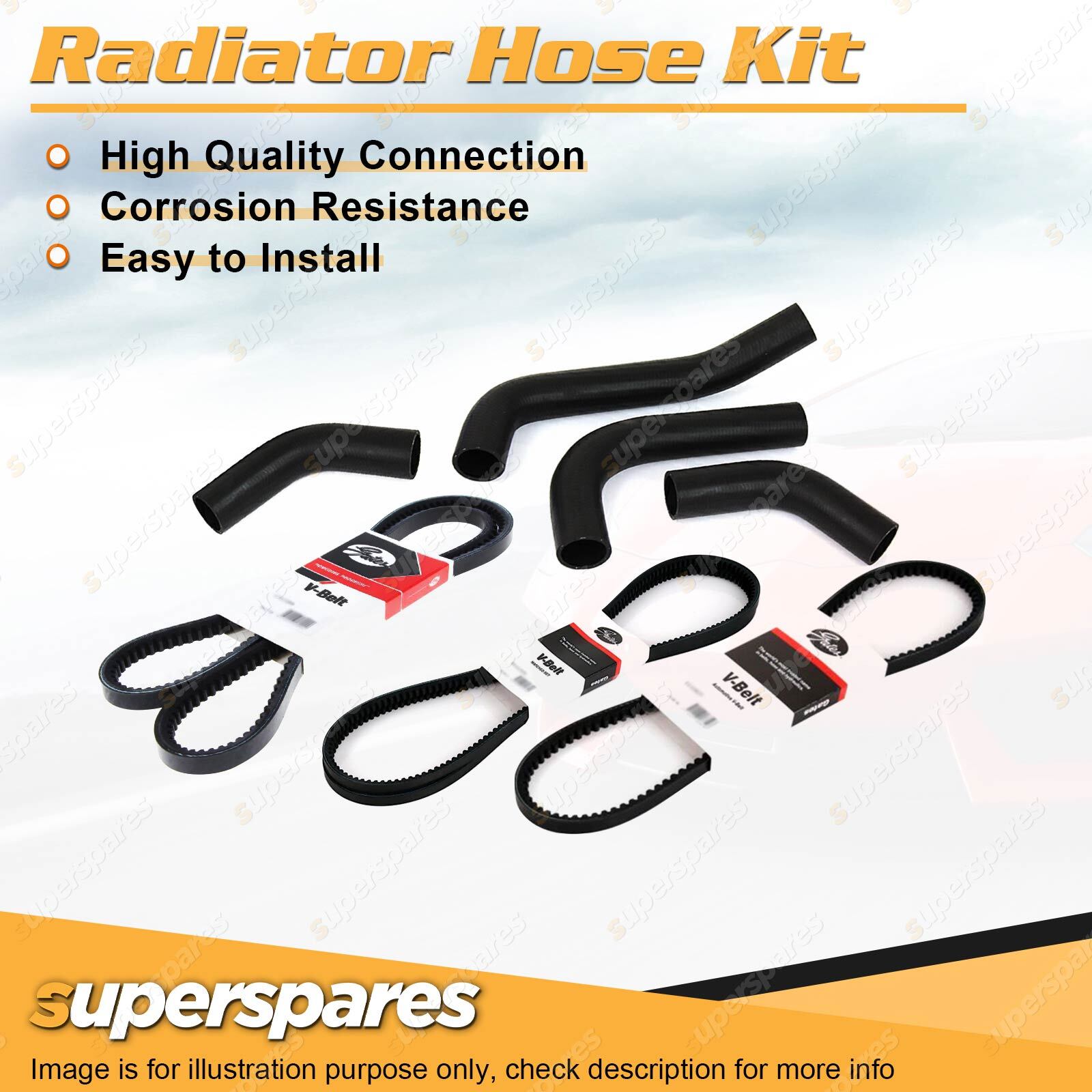 Content : Superspares Radiator Hose + Gates Drive Belt Kit